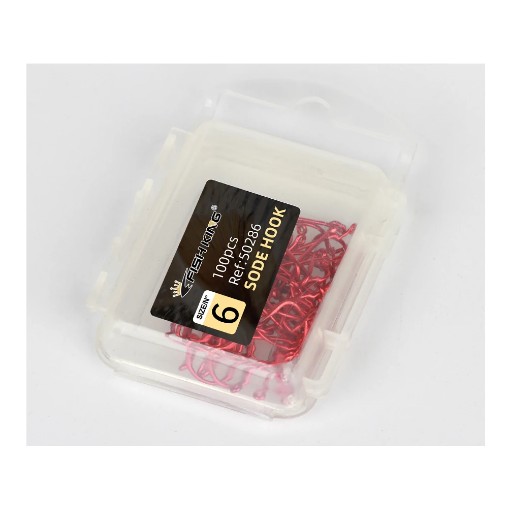 FISH KING-caja de anzuelos de carbono para pesca, 50/100 unidades, 6 #-14 #