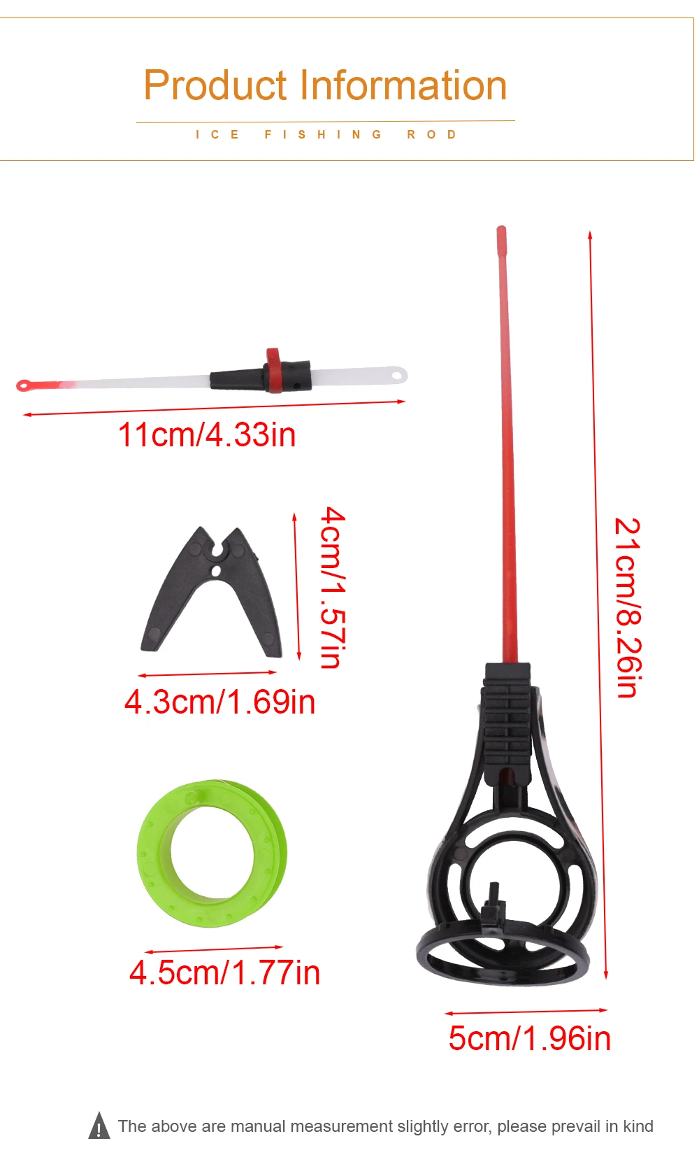FISH KING-caña de pescar de plástico ultraligero, vara de pesca de hielo, extensión gruesa, 21cm, pesca de carpa de invierno