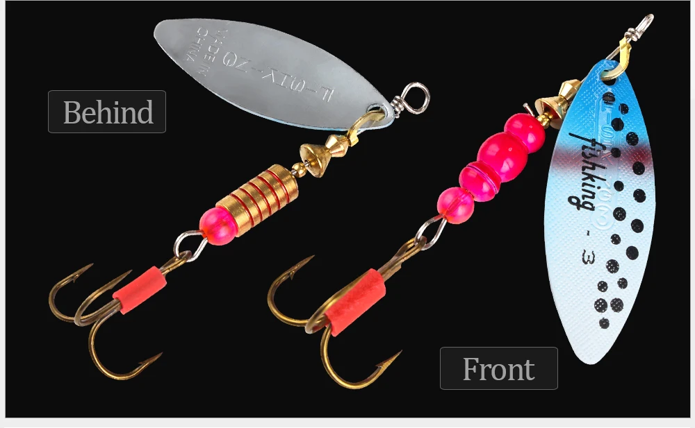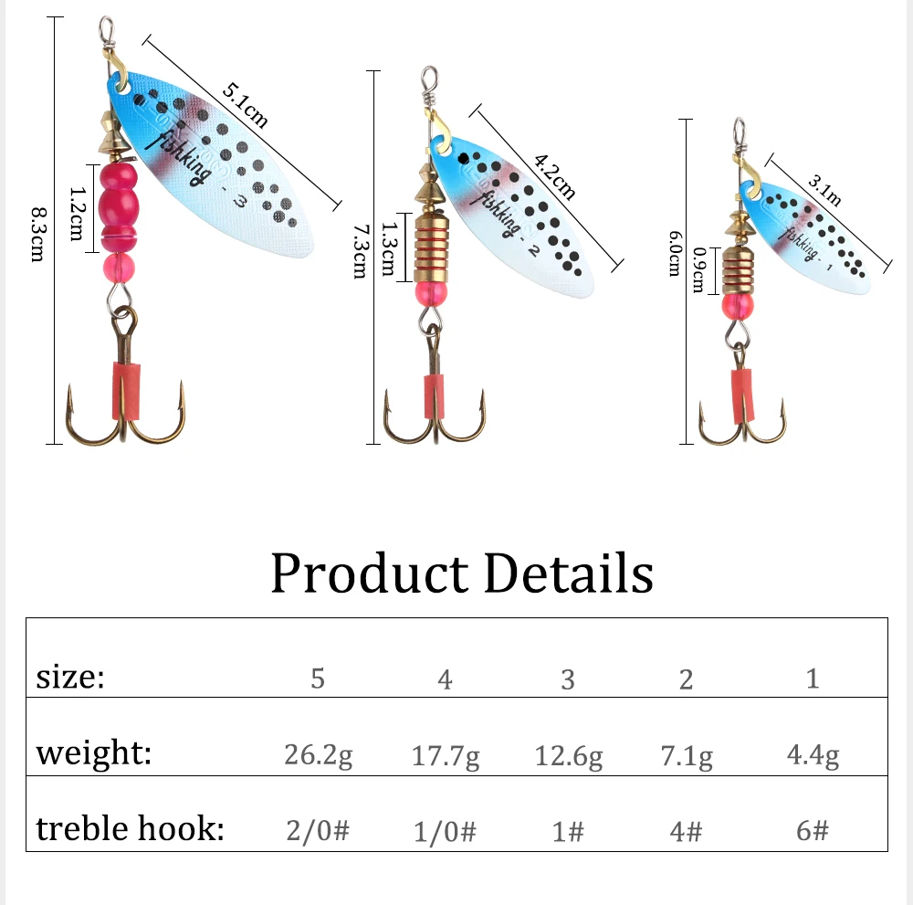 FISH KING-Cebo giratorio de 4,4g, 7,1g, 12,6g, 17,7g, 26,2g, señuelos de cuchara, Lucio de Metal con anzuelos triples, señuelo de pesca de lubina artesanal