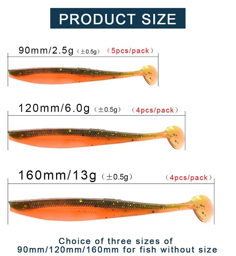FISH KING-cebo de silicona con olor a gusano, señuelo de pesca suave con cola en T, cebo Artificial de 4-5 Uds., Wobblers de lubina, 9/12/16cm