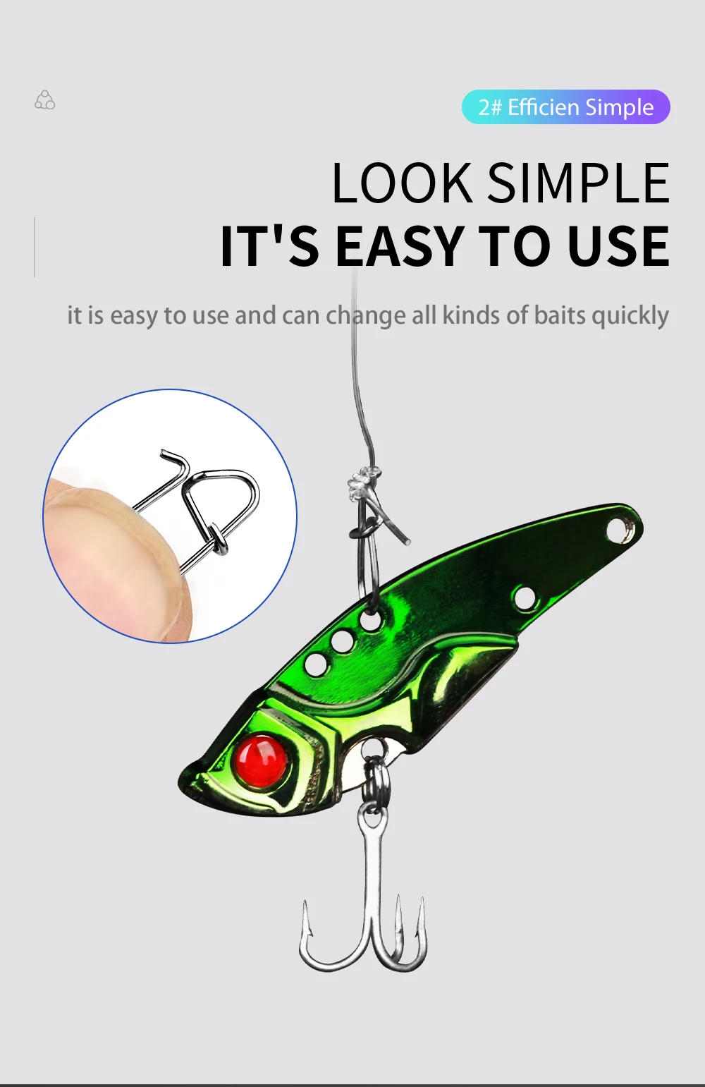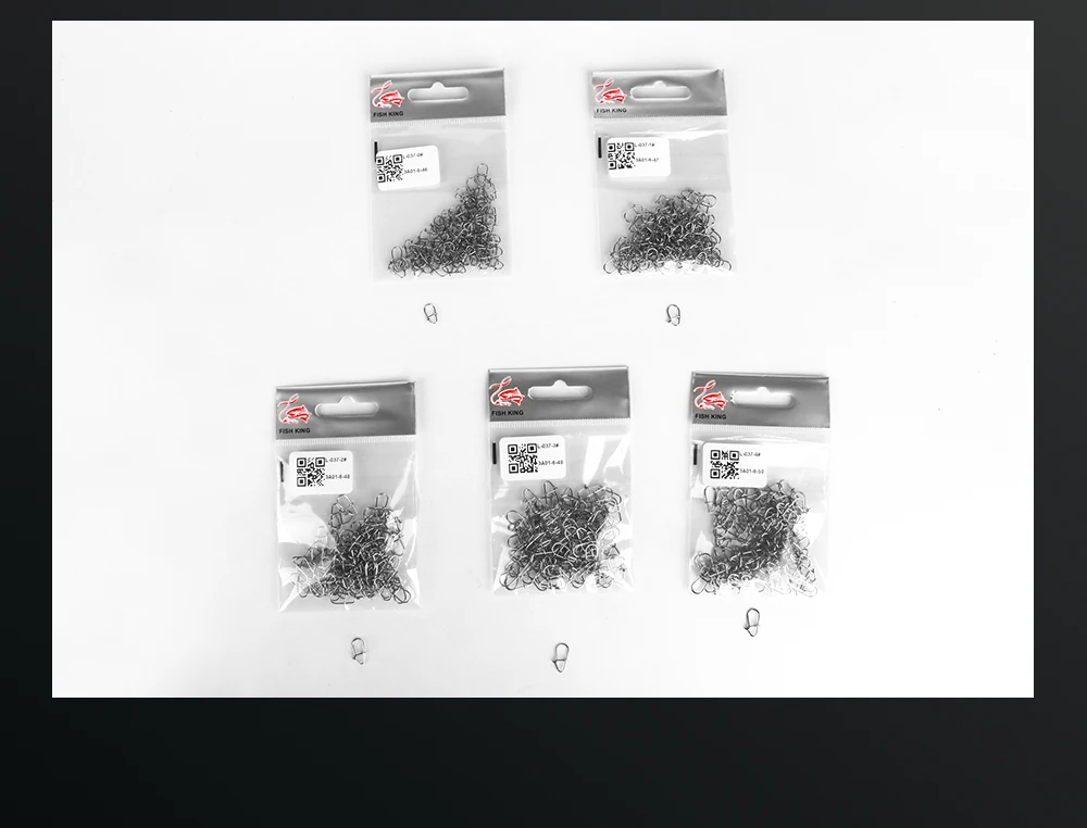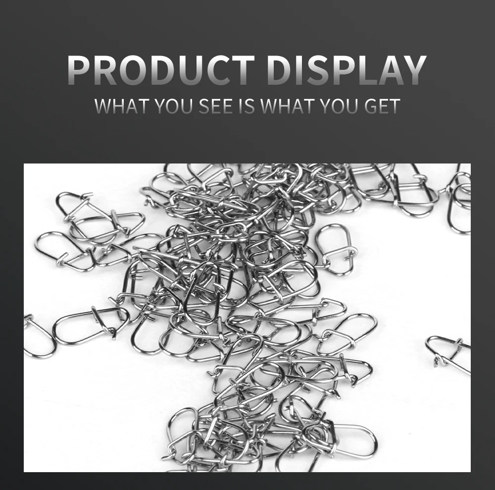 FISH KING-conector de pesca de acero inoxidable, cierre de Clip rápido, anillos giratorios sólidos, broches de seguridad, herramienta de gancho de pesca, 100 Uds.
