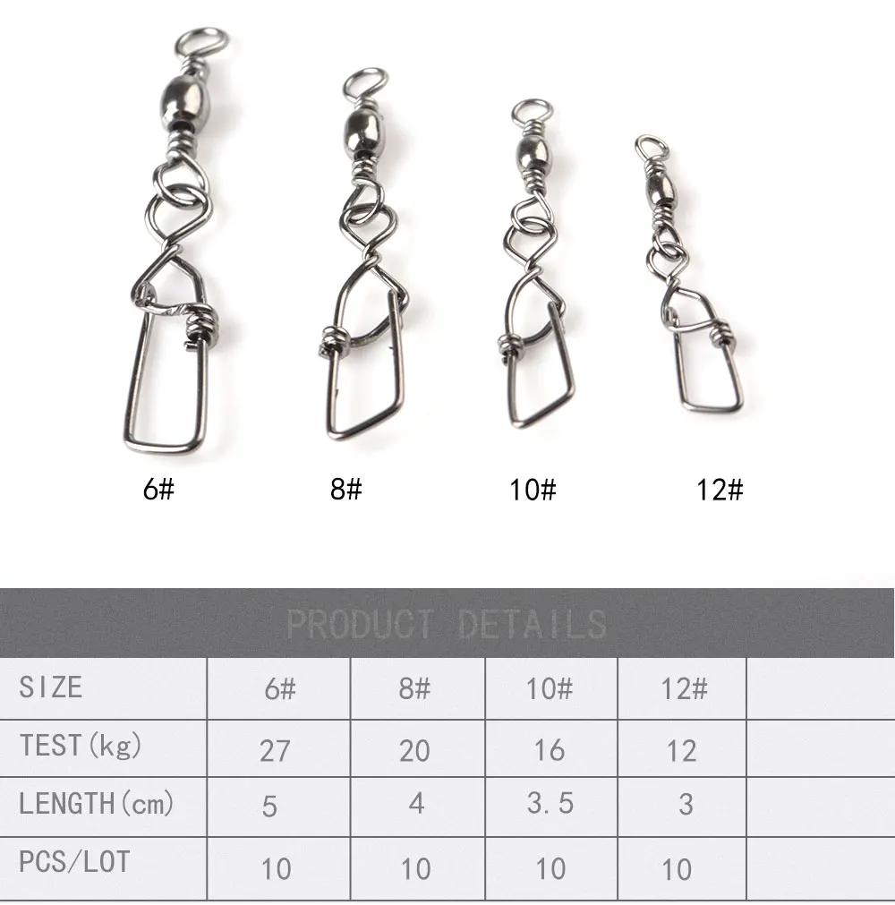 FISH KING-conector de pesca de acero inoxidable, Pin de rodamiento giratorio 6 #8 #10 #12, accesorios de pesca, 30 Uds./lote
