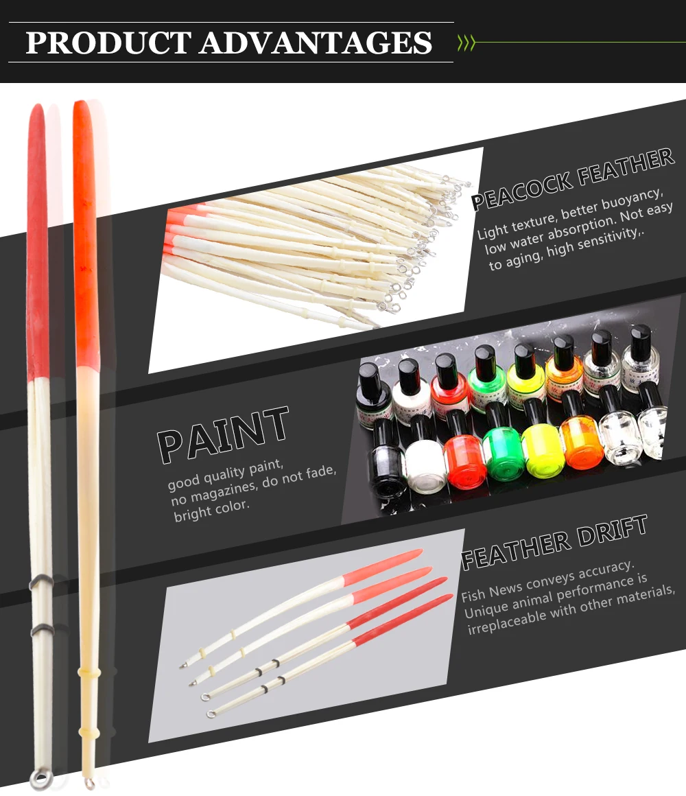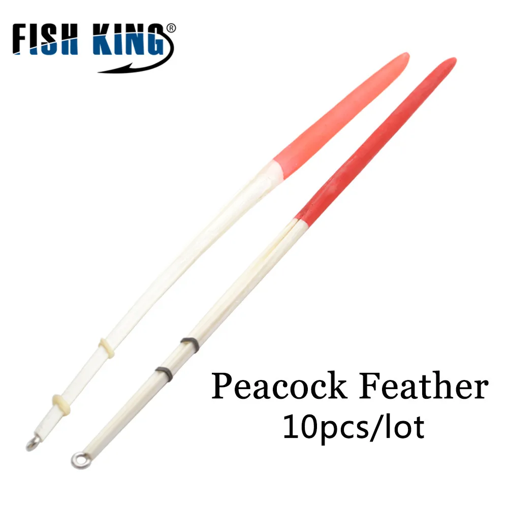 FISH KING-flotador de pesca con anillos, pluma de pavo real, aparejos de pesca, 10 piezas, 18cm