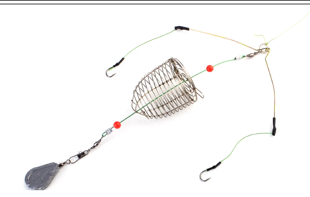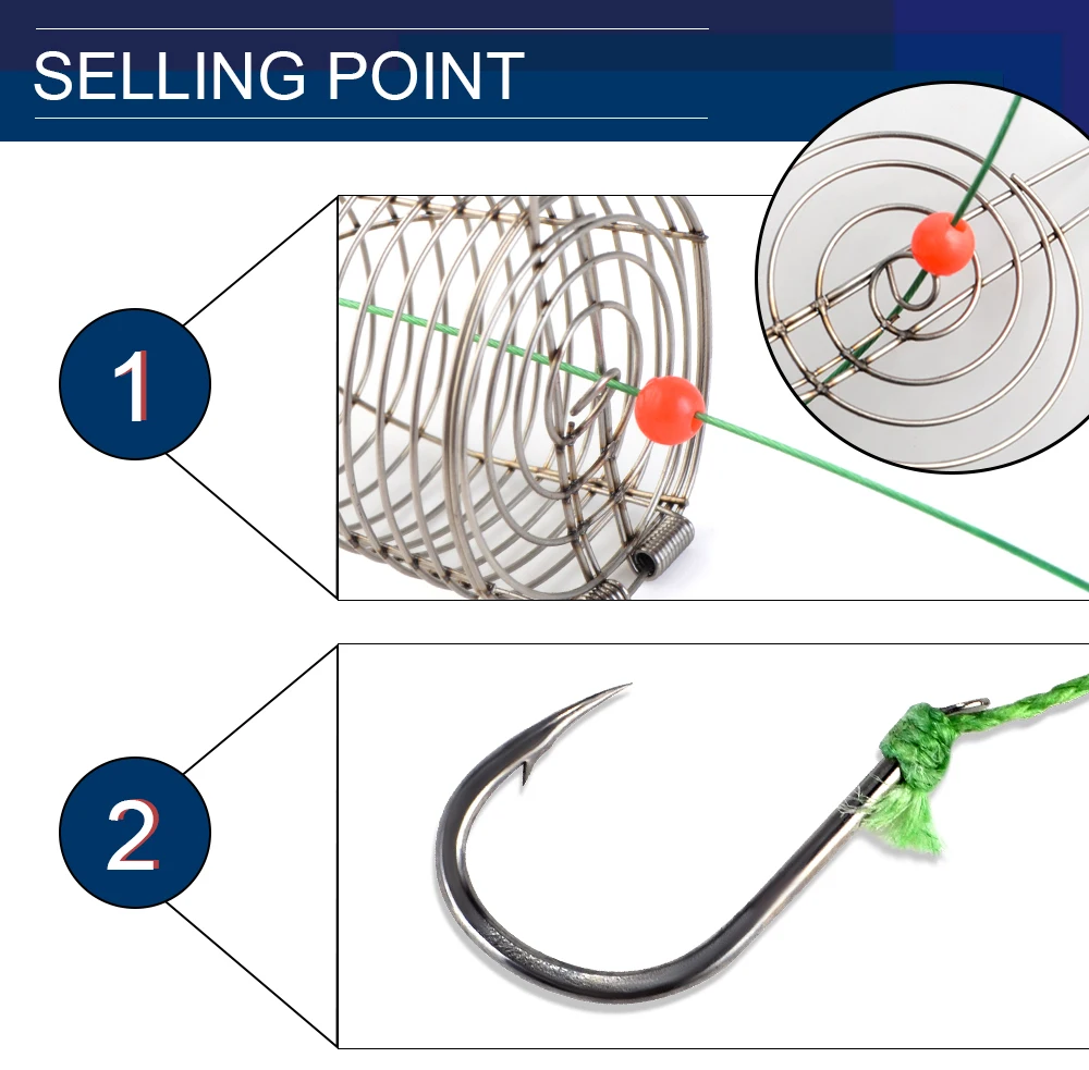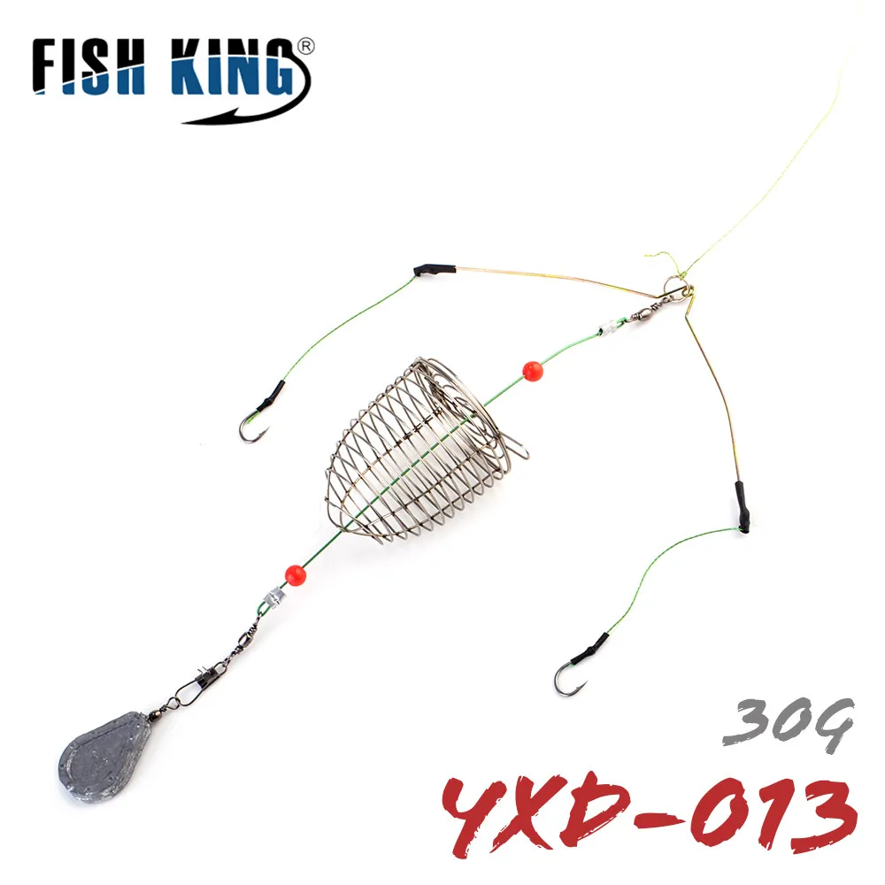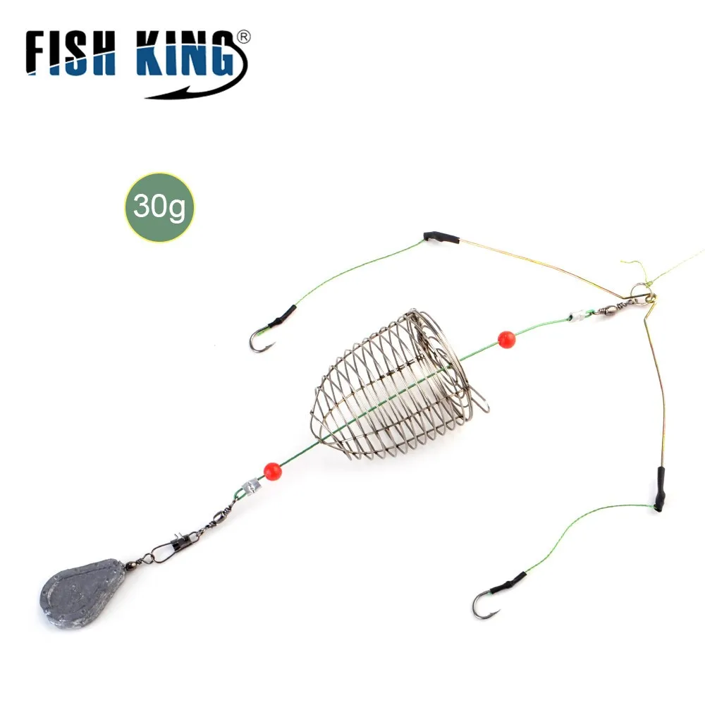 FISH KING-jaula de cebo de Metal de acero inoxidable, alimentador de 30g, grupo de pesca, aparejos de pelo de plomada, pesca de carpa con ganchos de línea para aparejos
