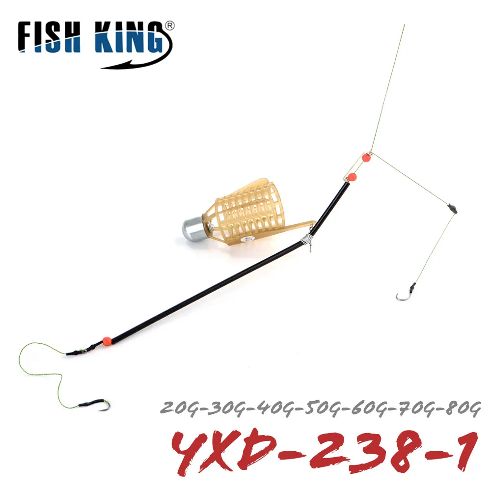 FISH KING-jaula de cebo para pesca, alimentador de señuelos, accesorios de pesca, gancho de púas de cuerda de acero al carbono, peso 20g-80g, 450mm