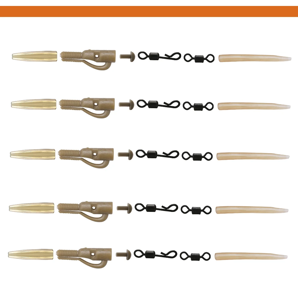 FISH KING-Juego de accesorios de pesca de carpa, conector giratorio rodante con mangas antienredos de goma, gancho para aparejos