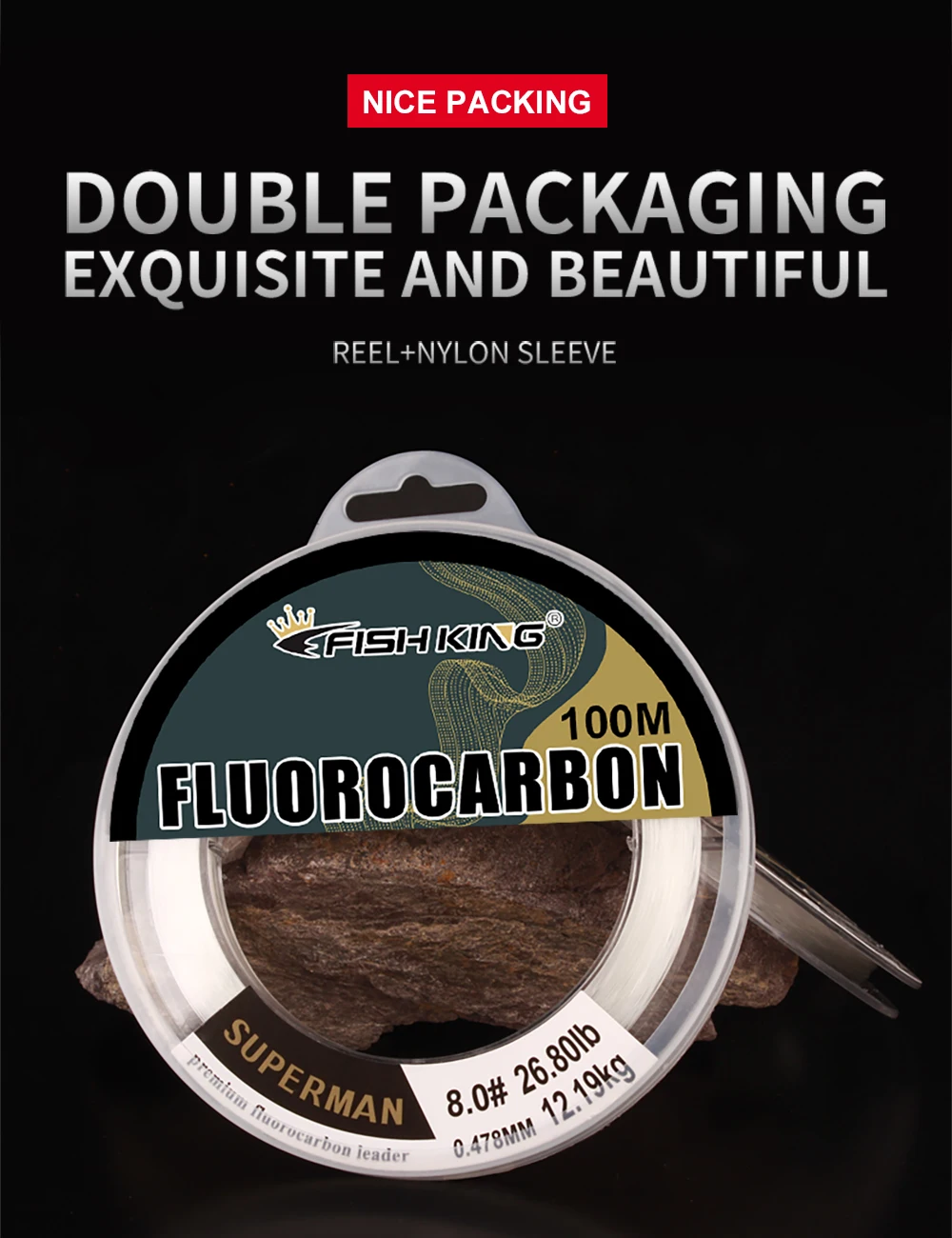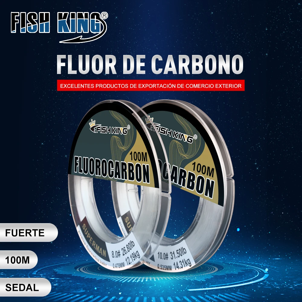 FISH KING-línea de pesca de fluorocarbono, monofilamento de fibra de carbono de 100m, líder de hundimiento, 100%
