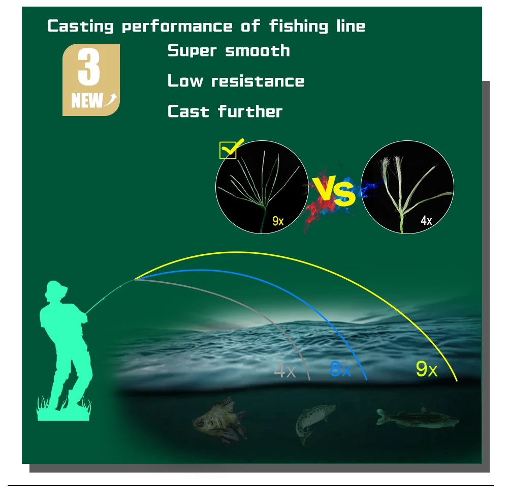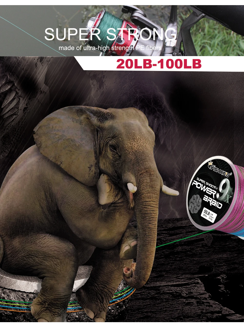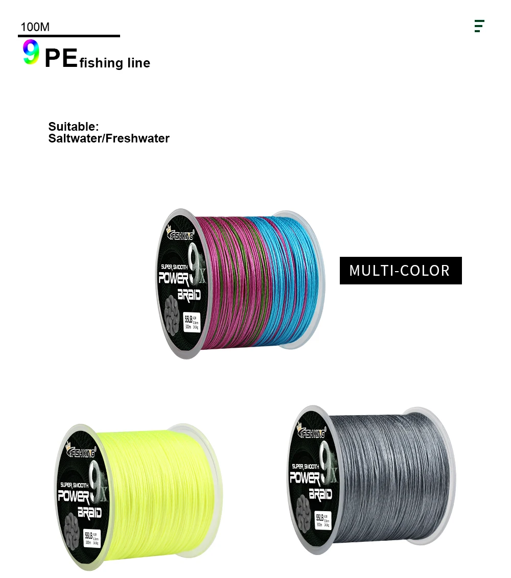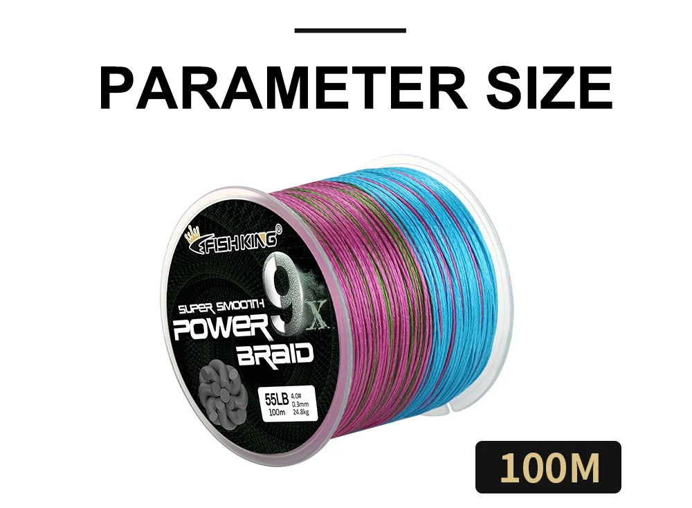 FISH KING-línea de pesca trenzada multifilamento, 100M, 9 hebras, 20-100LB, Multicolor, PE, cordón de pesca con mosca