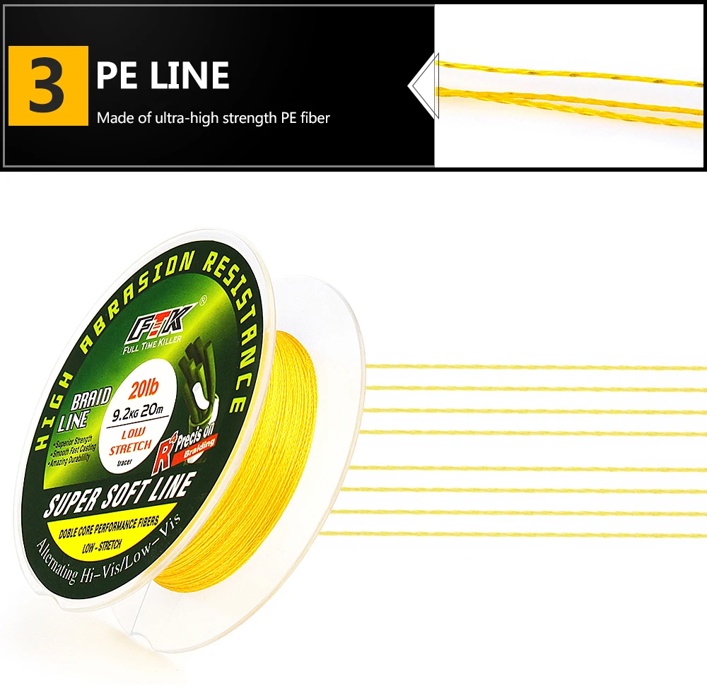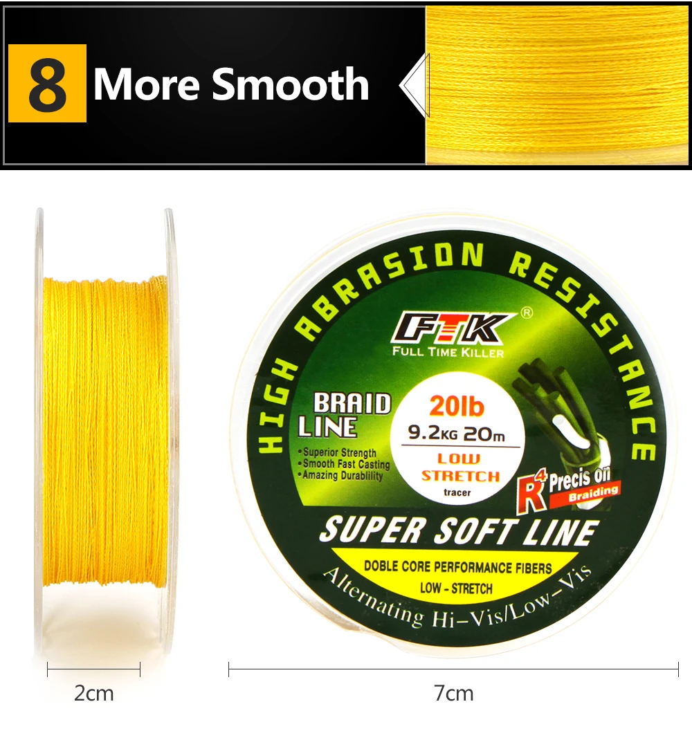 FISH KING-línea de pesca trenzada de PE, sedal de pesca en hielo, 4 soportes, 8lb-28lb, multifilamento, 20M
