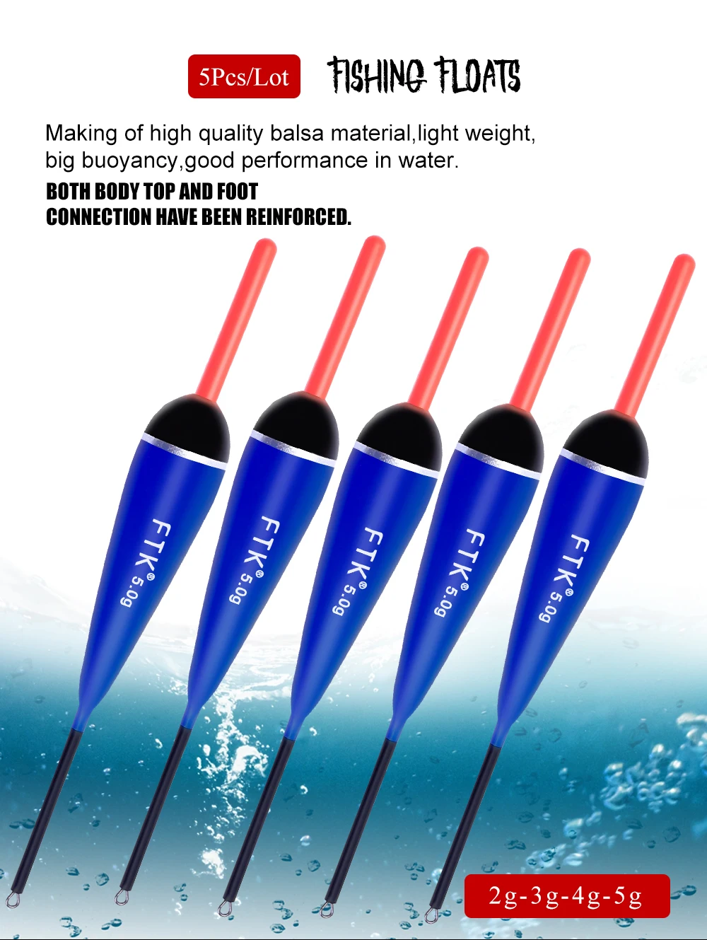 FISH KING nuevo flotador de abeto Barguzinsky 5 unids/set flotador de pesca 2-5g boya Vertical de cola larga aparejos de pesca para pesca de carpa