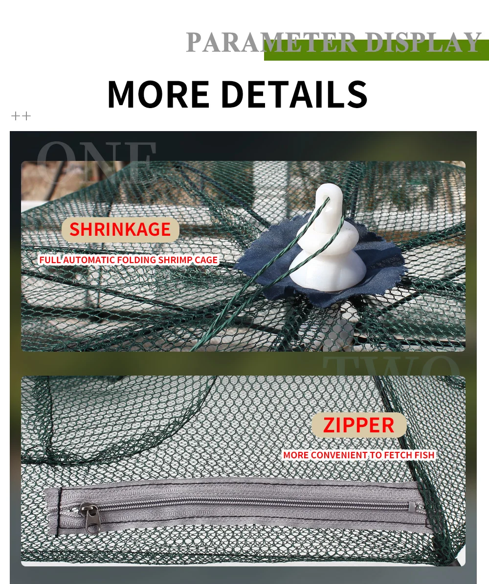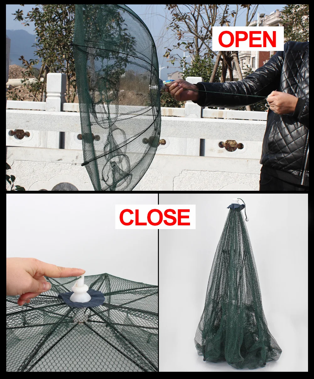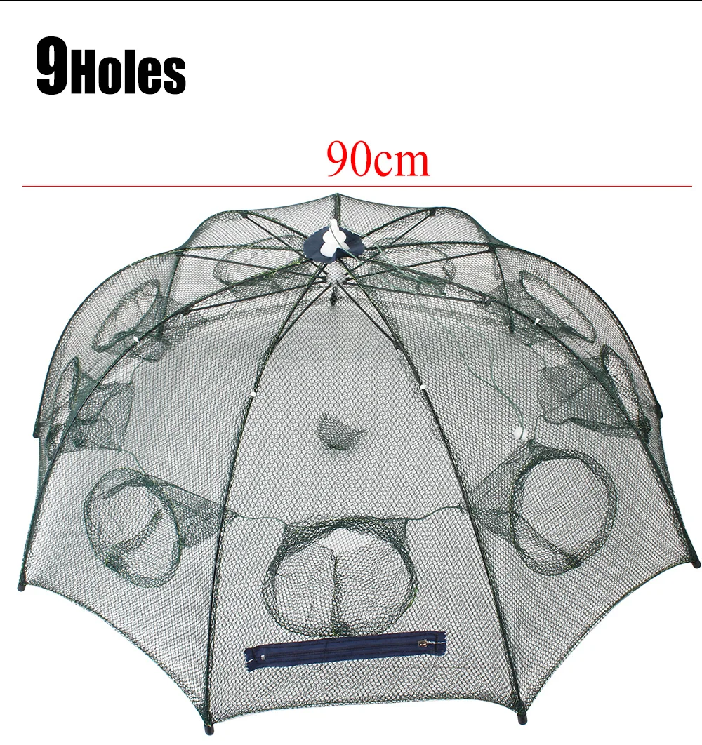 FISH KING-red de pesca automática reforzada, jaula para camarones, trampa plegable para peces, fundición plegable, 6 agujeros, 8 agujeros, 9 agujeros