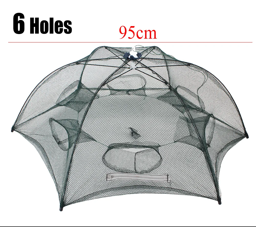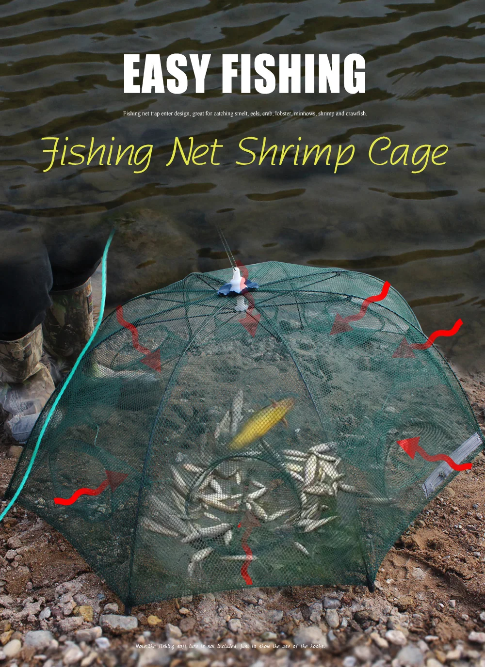 FISH KING-red de pesca portátil con 8/9 agujeros, jaula de nailon para camarones, trampa plegable para peces, red de pesca automática para exteriores