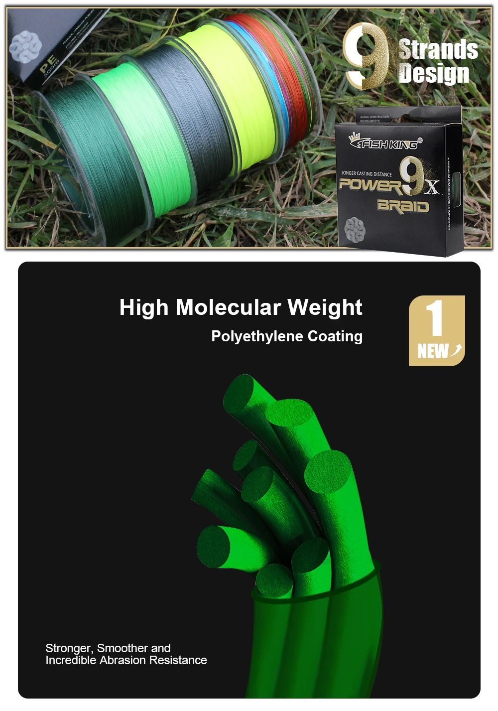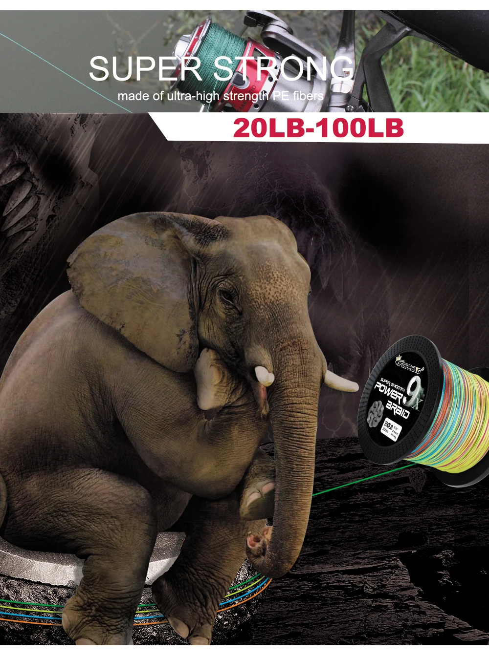 FISH KING-sedal de pesca de 100M, 9 hebras, 20LB-100LB, Multicolor, espiral inversa, multifilamento, fuerte, trenzado para carpa