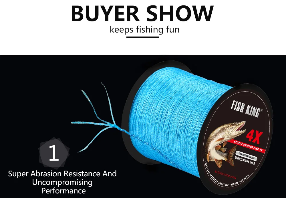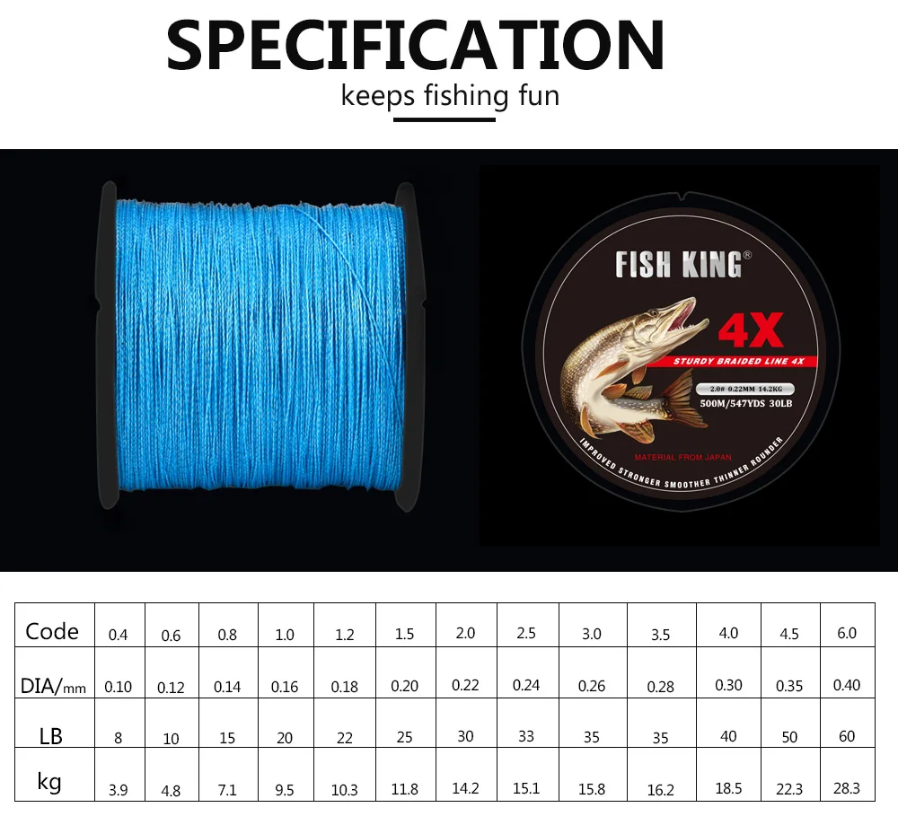 FISH KING-sedal de pesca de 300M, 0,4 #-6,0 #, 0,10mm-0,40mm, 8-60LB, alambre trenzado de PE, multifilamento de 4 hebras