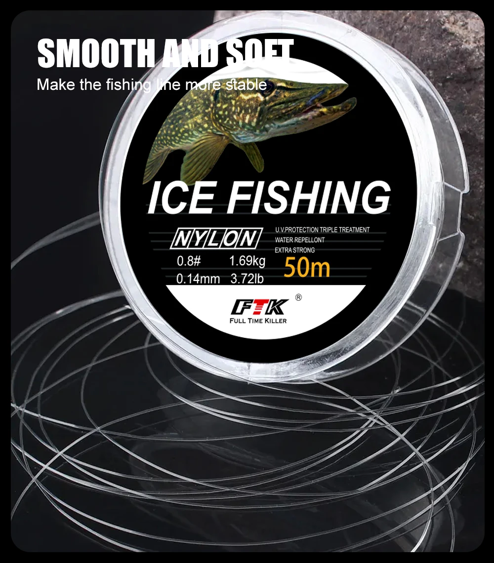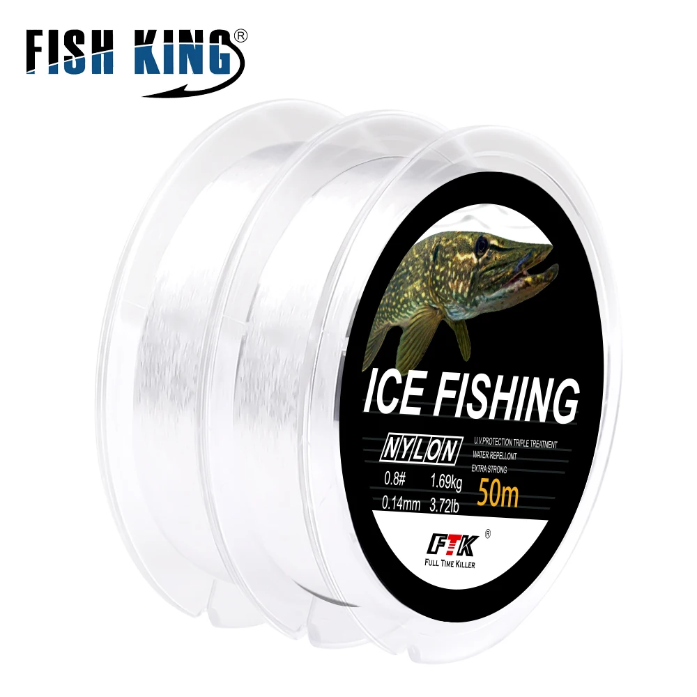 FISH KING-sedal de pesca en hielo de nailon, 50M, nivel de 0,14-0,35mm, transparente, para lubina, carpa, accesorios de pesca de invierno
