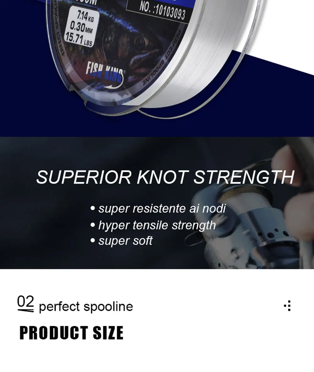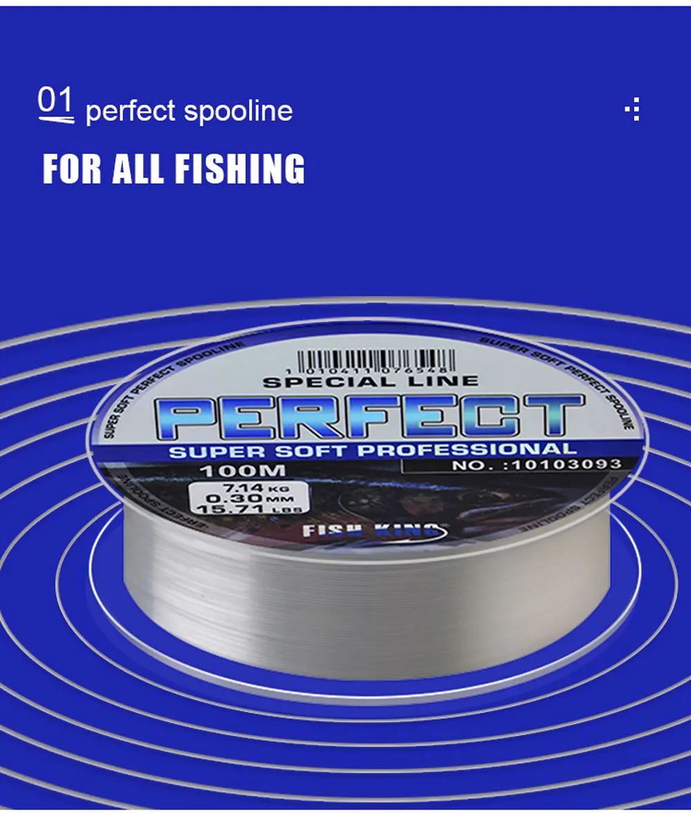 FISH KING-sedal de pesca de nailon, 100M, 0,14mm-0,50mm, monofilamento súper fuerte, pesca de carpa, 4,136LB-34,32LB