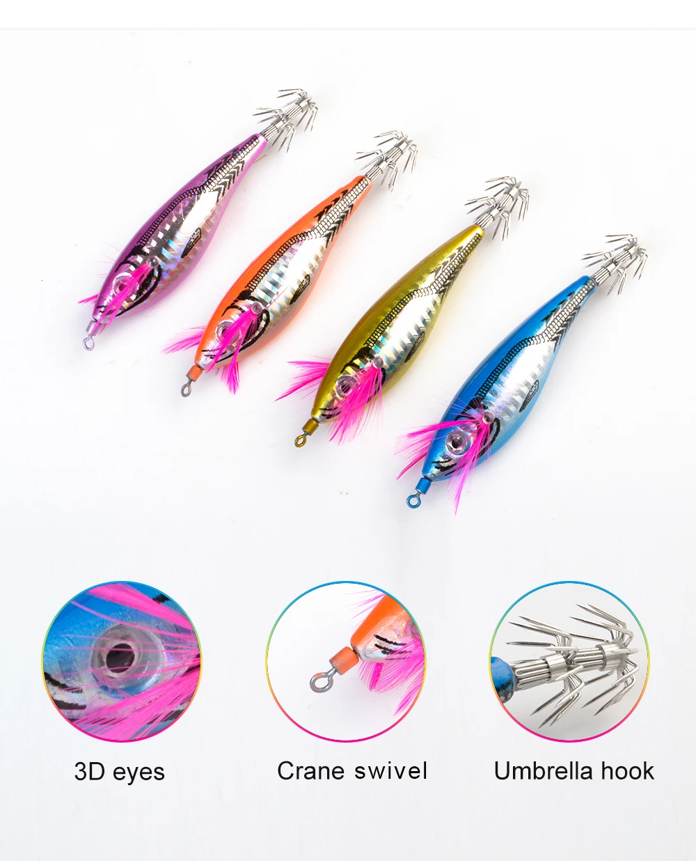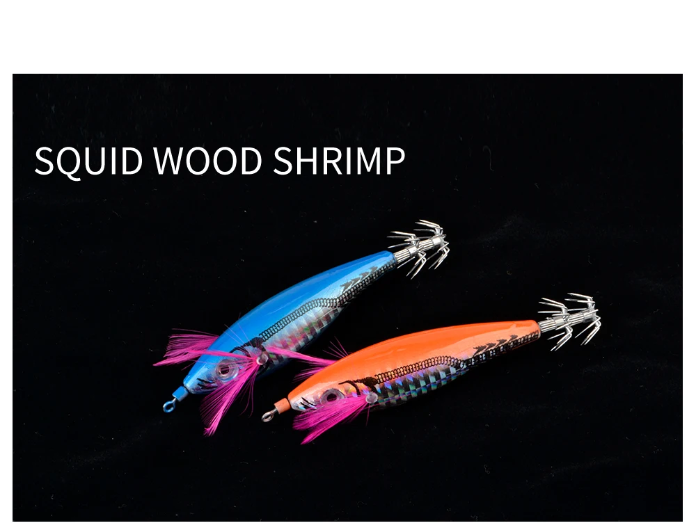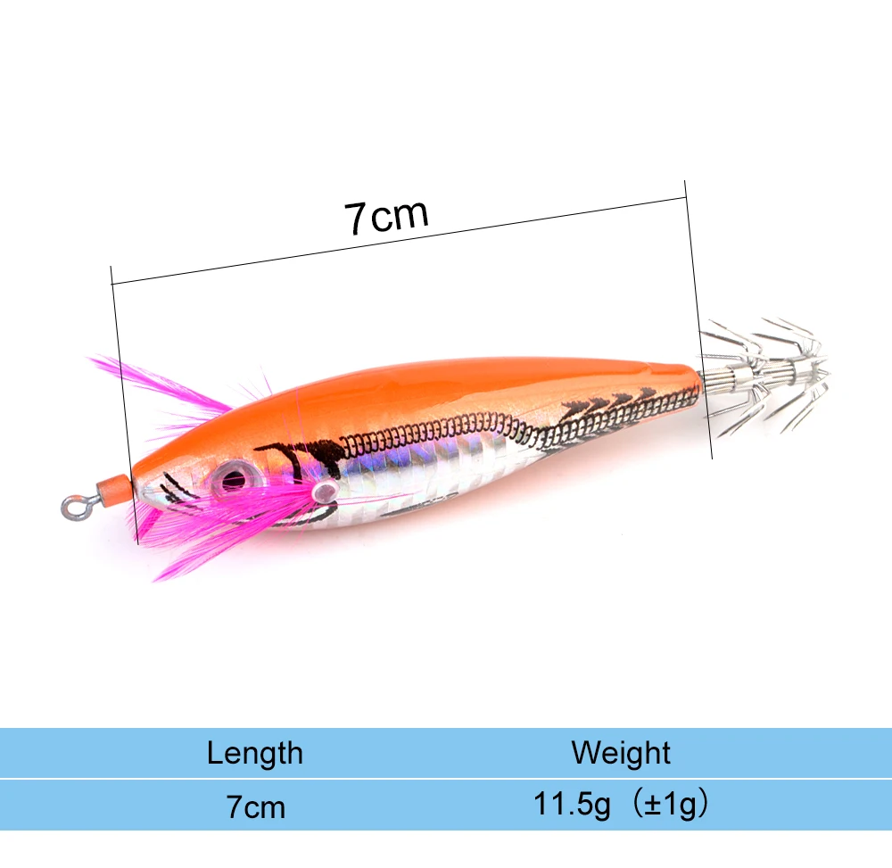 FISH KING-señuelo luminoso de madera para pesca de camarones, anzuelo de calamar, 7cm, 11,5g, 4 colores, Jigging brillante, plantilla de pulpo, luminoso