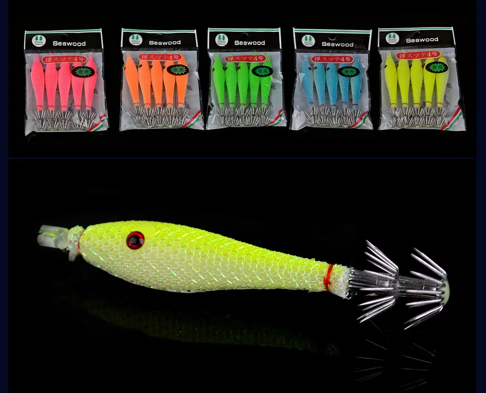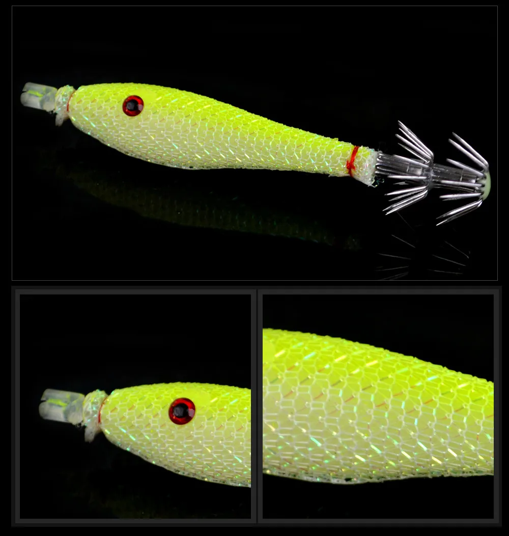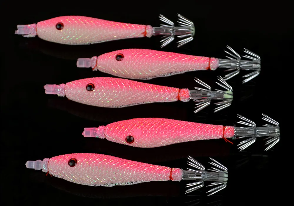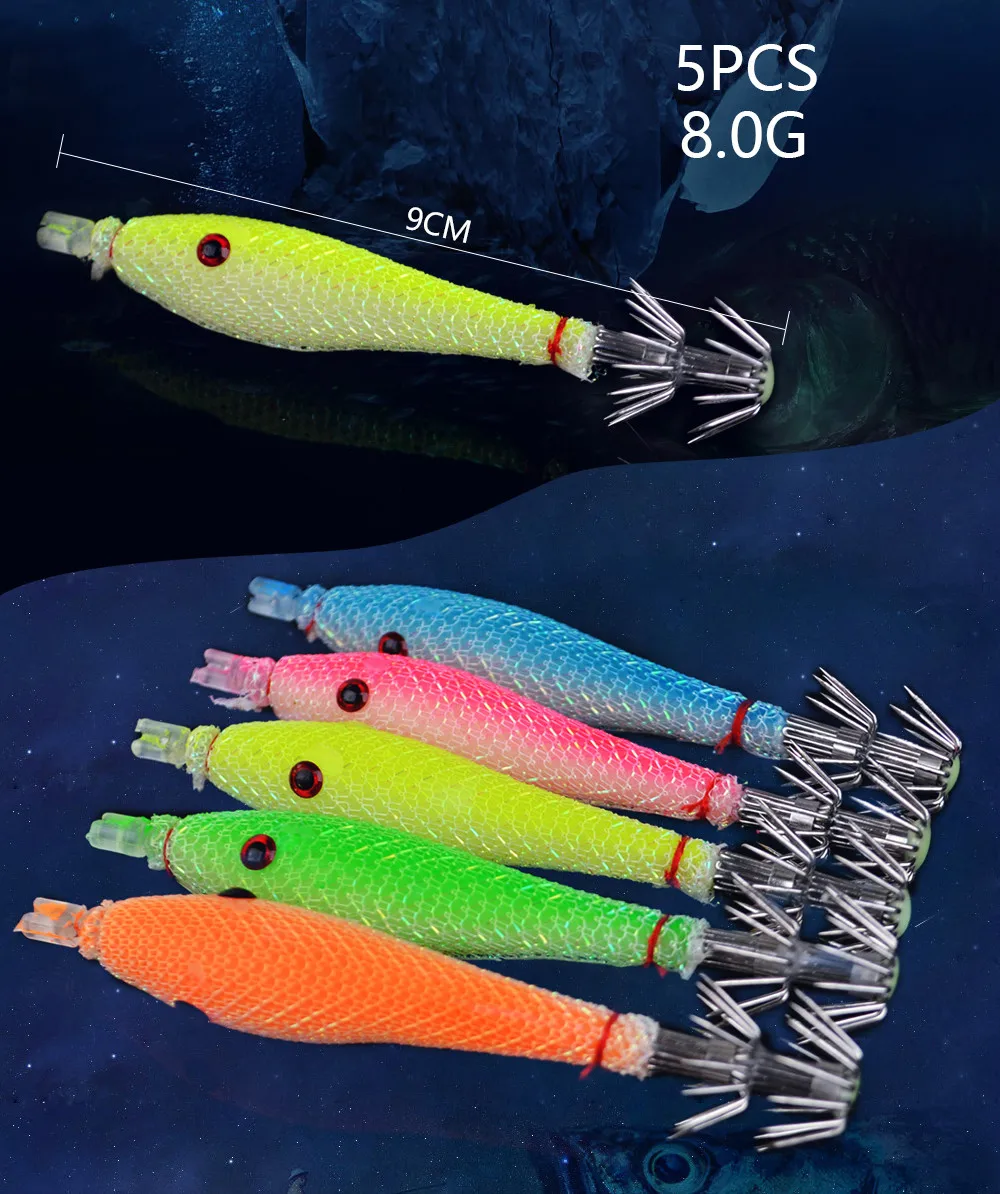 FiSH KING-señuelo luminoso de Pesca en el mar, anzuelo de pulpo de calamar suave, aparejos de Pesca Vissen, cebo artificial, 5 piezas, 9cm, 8g