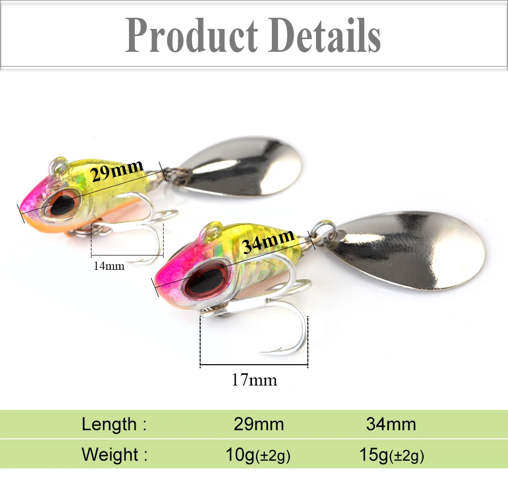FISH KING-señuelo de pesca en hielo, 1 unidad, 10g/15g, señuelo de pesca en hielo de invierno, anzuelos de pesca de 29mm/34mm, cabeza VIB, señuelo de lubina, Jigging