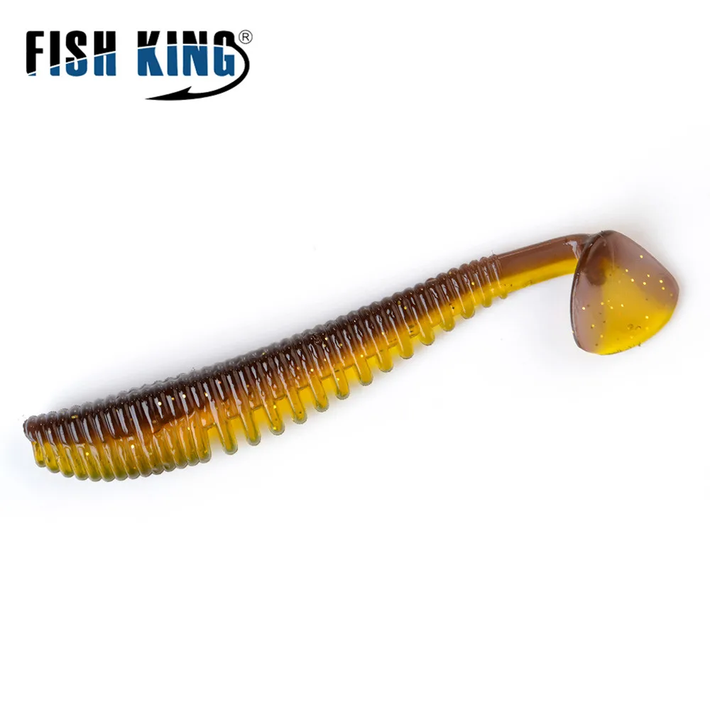 FISH KING-señuelo de pesca suave, cebo de silicona con olor de 7,5/10/12, 5cm, cola en T, gusano Wobblers, cebo de pesca Artificial, Lucio, 4-10 Uds.