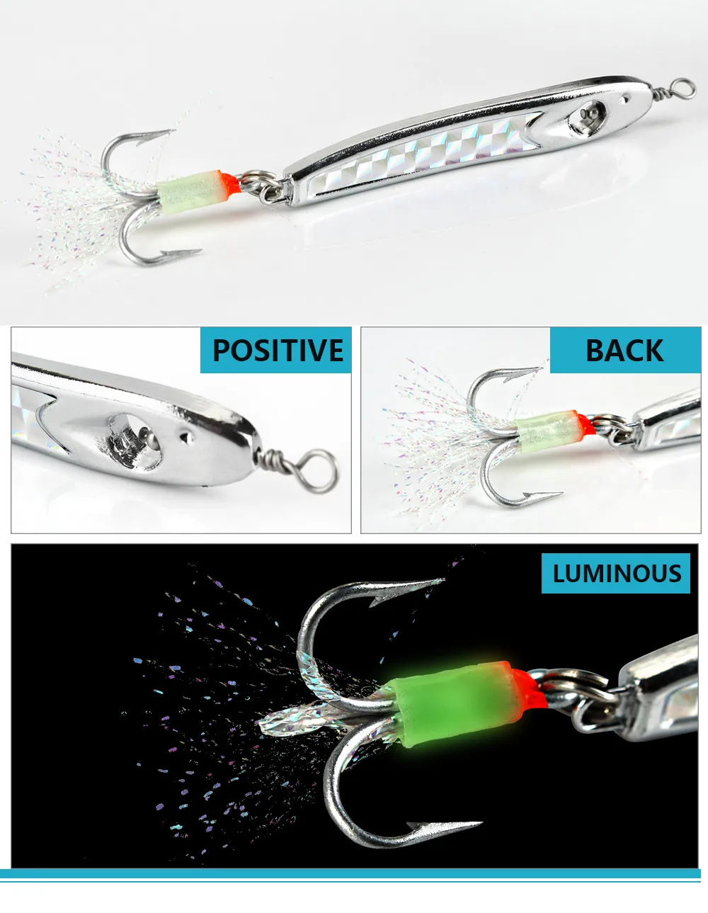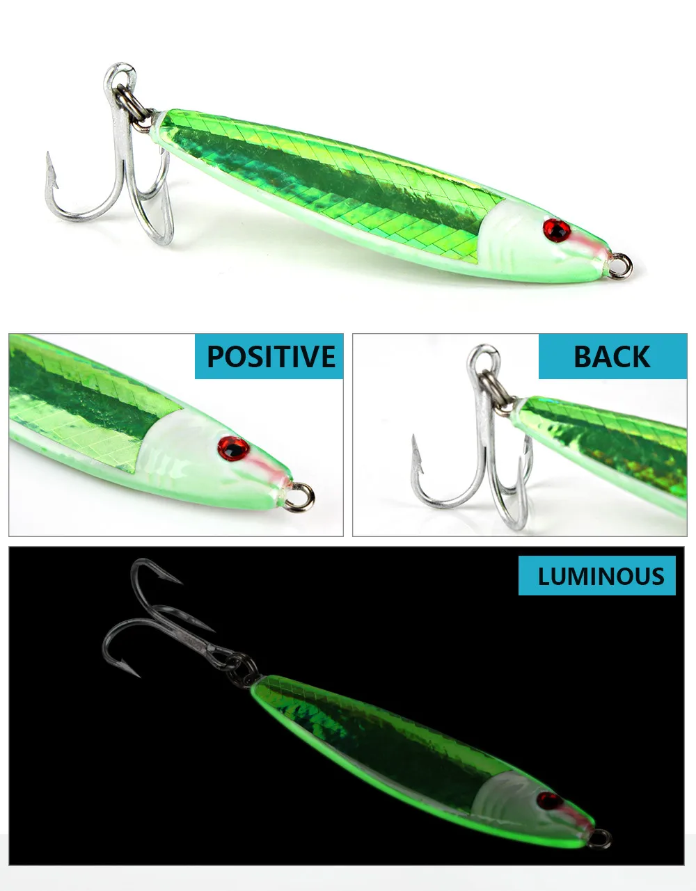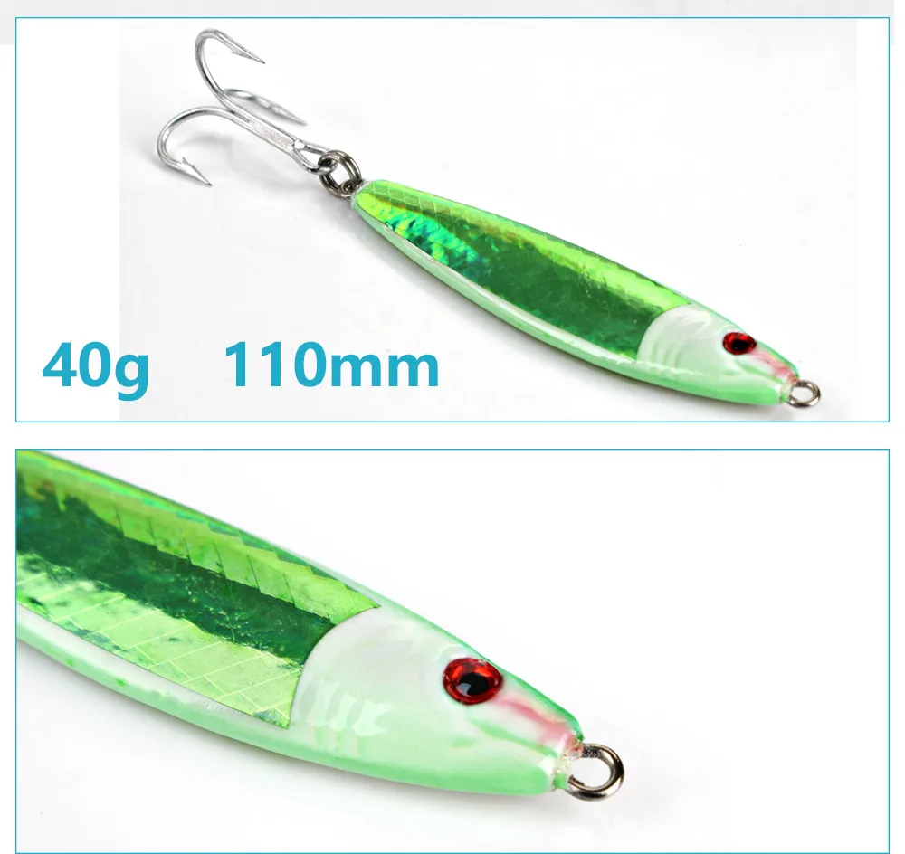 FISH KING-señuelo de plantilla de Metal con anzuelo de acero inoxidable, cebo Artificial duro con ojo 3D, aparejos de Pesca de mar, 40G