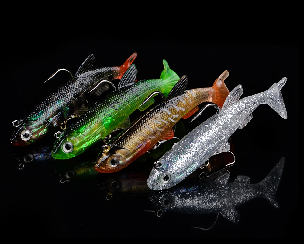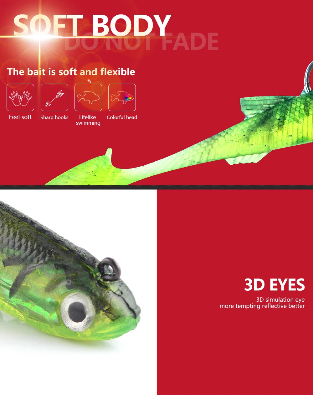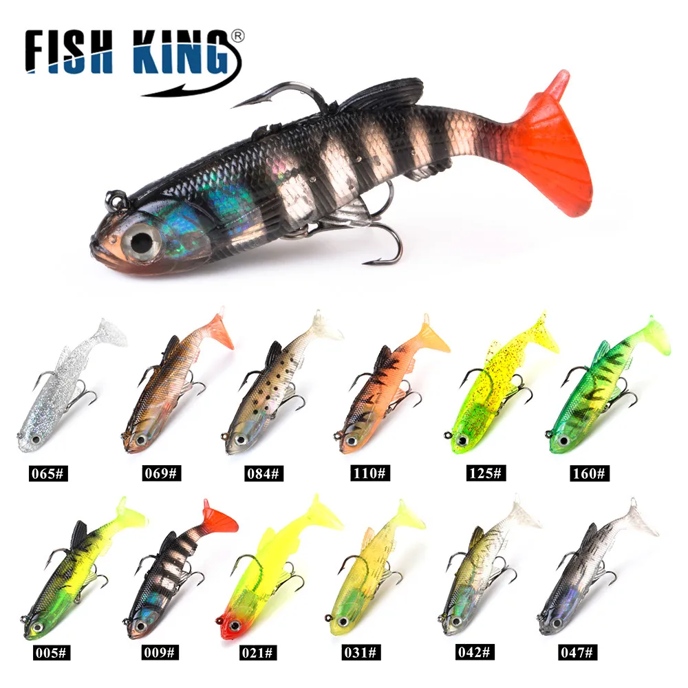 FISH KING-Señuelos de Pesca con ojos 3D, 6/8/10CM, con cola en T, suave, anzuelo triple, cebo Artificial, cabeza de plantilla, Crankbait