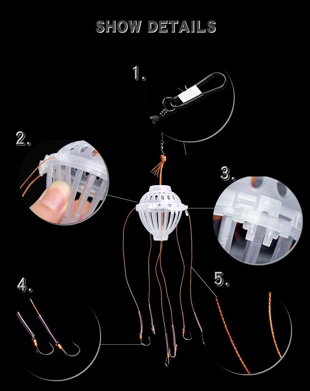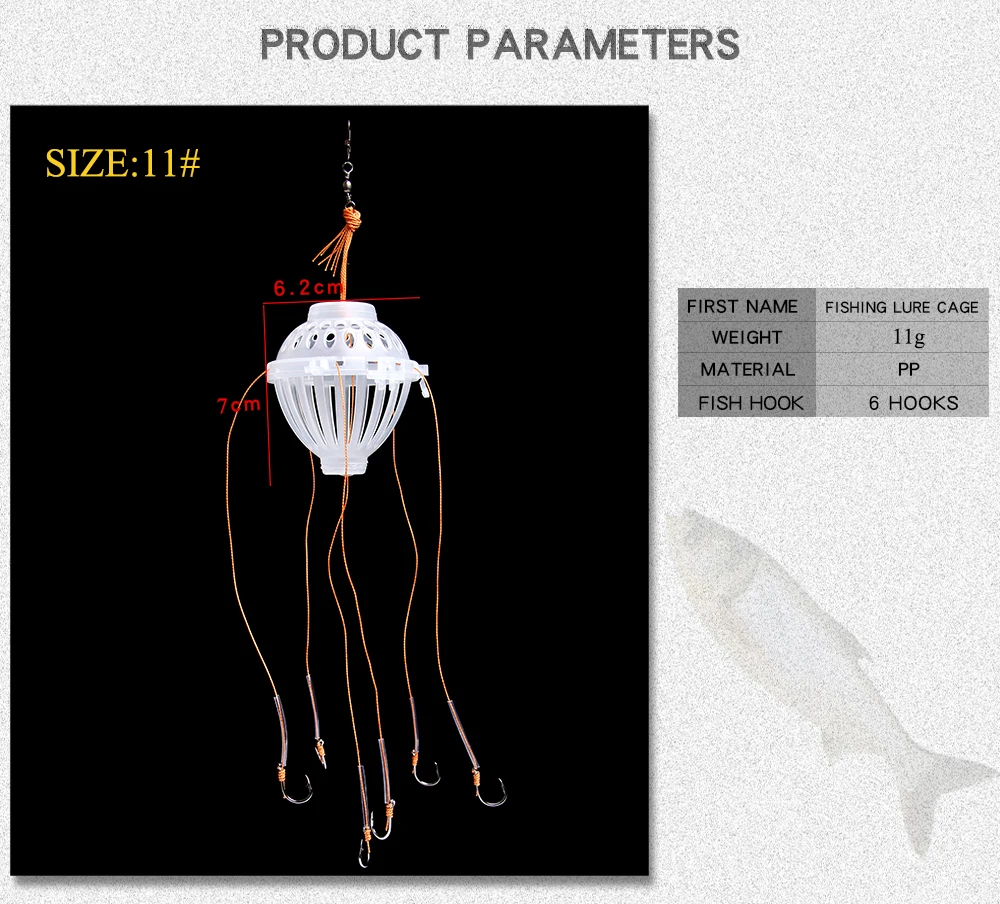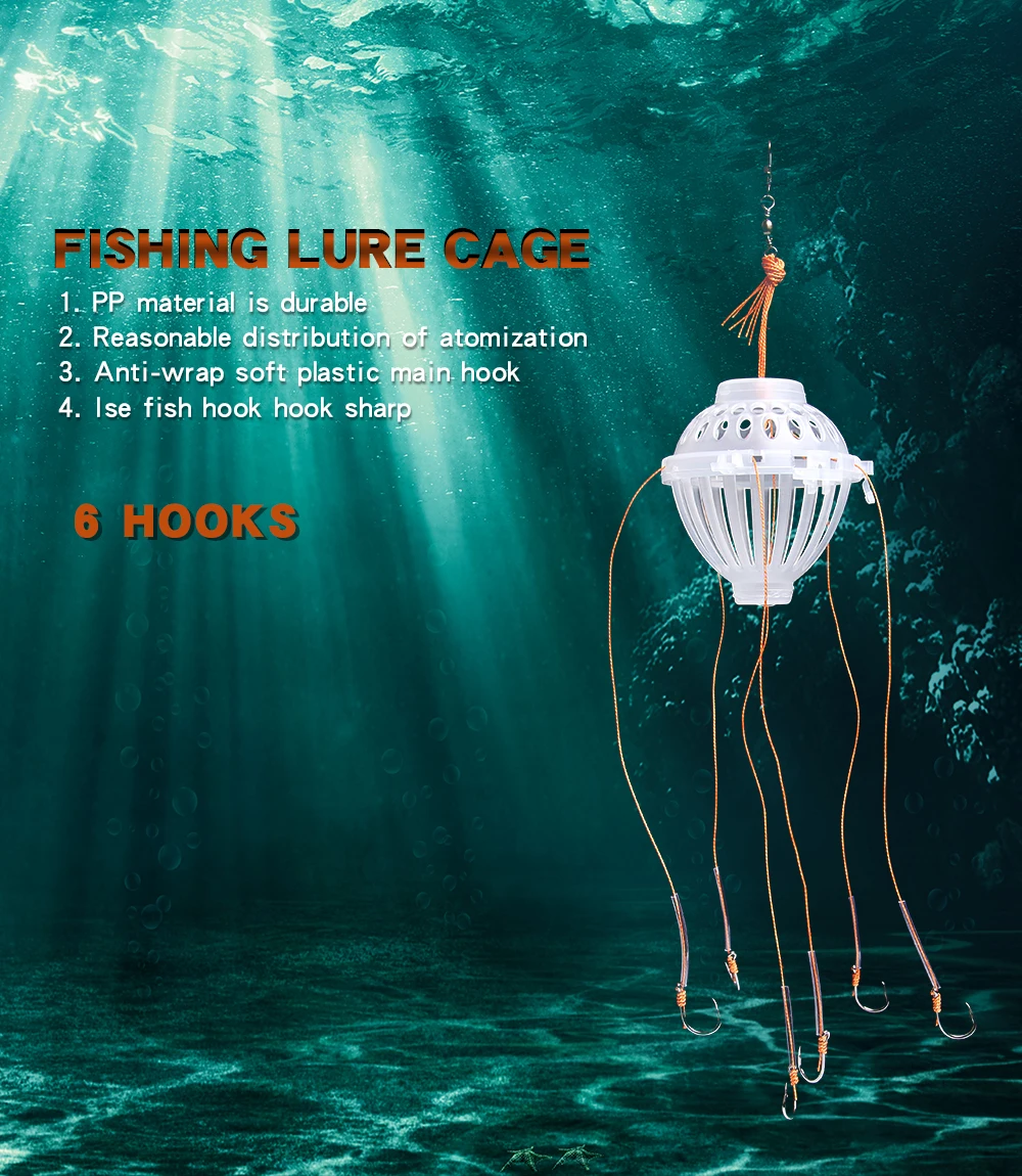 FISH KING-Soporte de cable de plástico con anillo de conexión, trampa pequeña, línea de PE, 6 ganchos, jaula para Señuelos de Pesca, 1 unidad