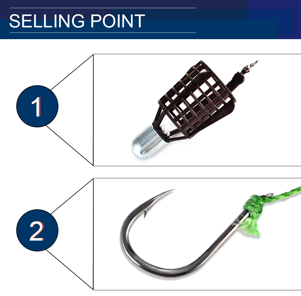 FISH KING-Soporte de cesta para cebo, jaula de señuelo de pesca con ganchos de línea, accesorios de pesca, 20G-80G