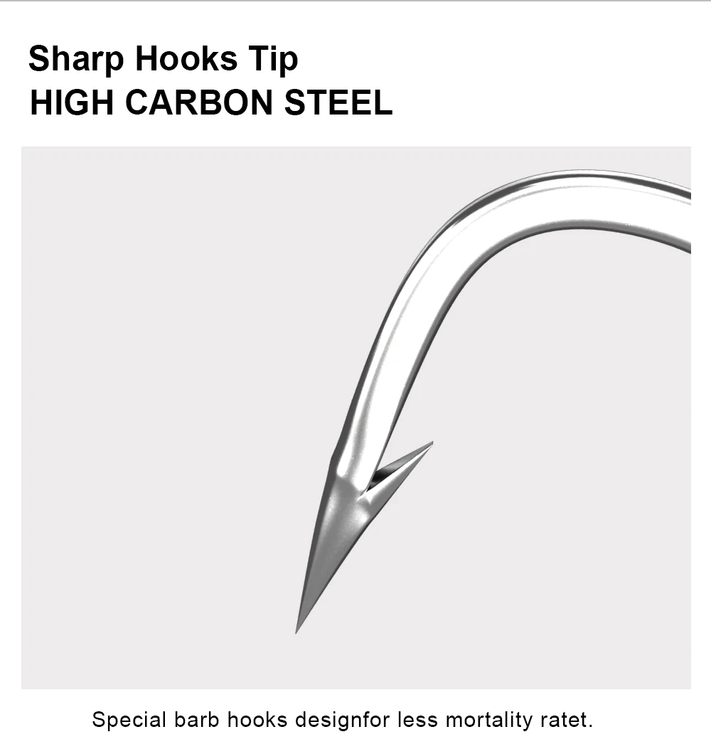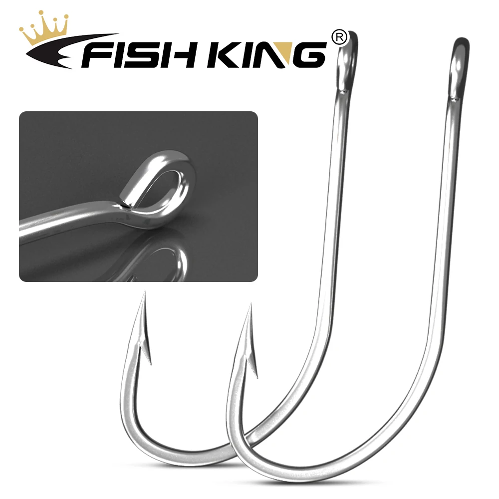 FISH KING30-50Pcs anzuelo de pesca de vástago largo con anzuelo de púas de ojo anzuelo de acero rico en carbono para accesorios de pesca de carpa de agua salada