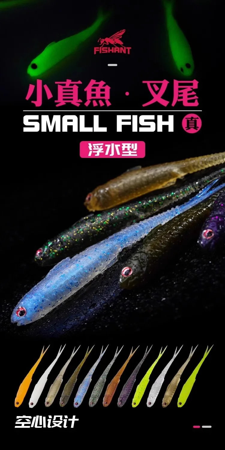 FISHANT-señuelo de agua flotante con cola de tenedor de pescado, hormiga voladora Xiaozhen, cebo suave, insecto, perca negra, capó de pez mandarín, boca