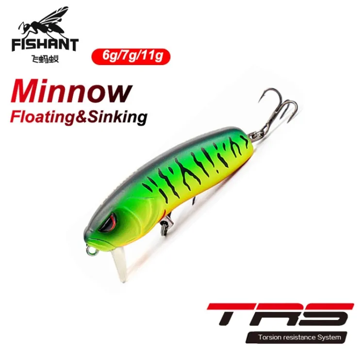 FISHANT-señuelo de pesca flotante/hundimiento, cebo falso de fundición larga para lubina, agudos/anzuelos individuales, 6g/7g/11g