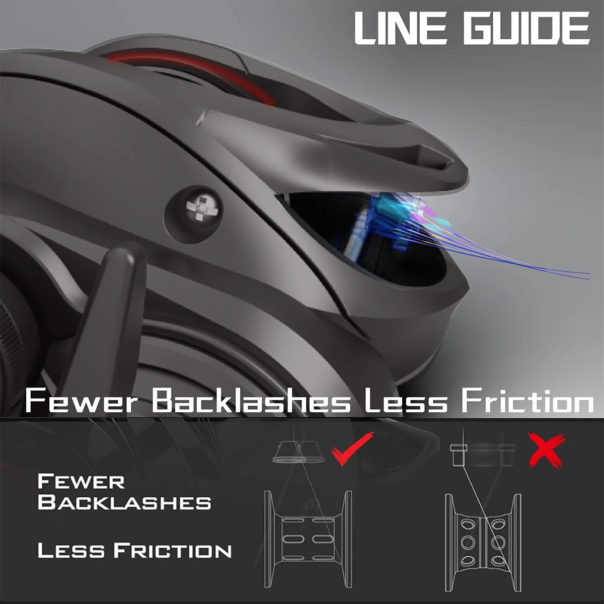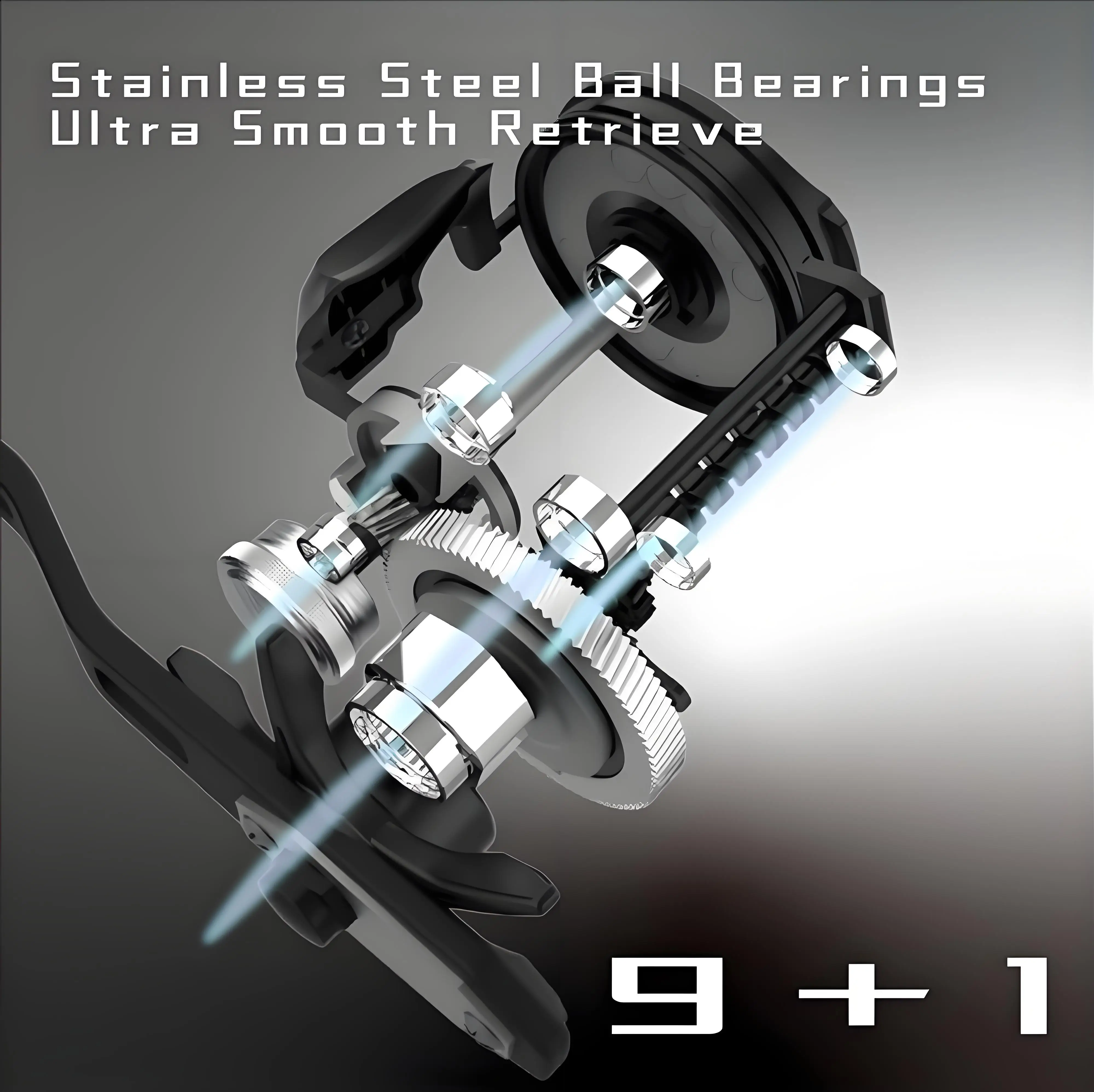 Ligero y equilibrado: el carrete de pesca BOLD300 está diseñado para ser notablemente liviano y pesa solo 235 gramos (8,29 onzas).Este diseño liviano garantiza que los pescadores puedan sostener el carrete cómodamente durante períodos prolongados sin fatiga.La estructura equilibrada garantiza un agarre estable; al sostener el carrete giratorio, permanece estable y, durante el lanzamiento, no se verá afectado por una distribución desequilibrada del peso, lo que permite un balanceo suave y preciso del poste.
