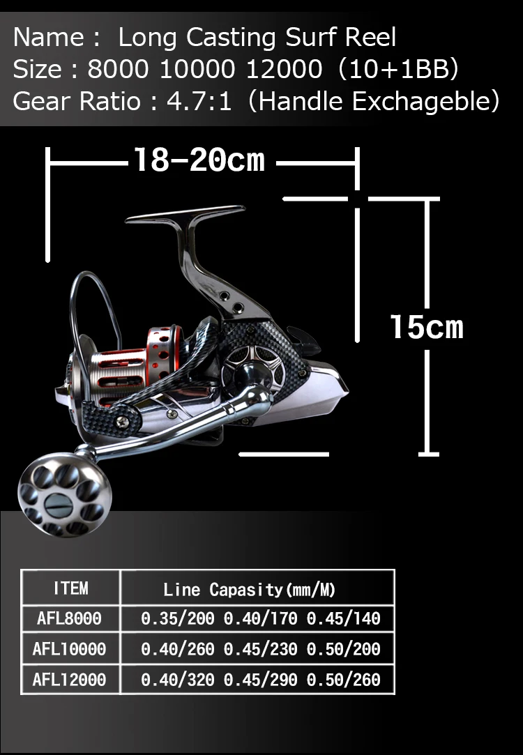 Hot Sale!ᅠFull Metal Bodyᅠ size 8000 ᅠ10000ᅠ 12000 Spinning Reels Big Trolling Reel ᅠSurf Cast Reel Fishing Reel for Long Distance Cast Reels