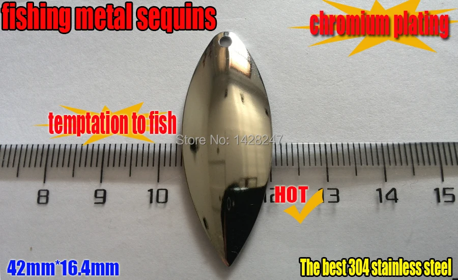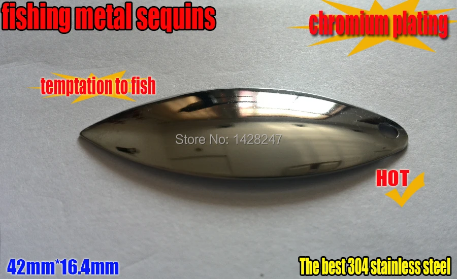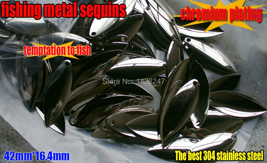 Fishing metal lentejuelas sauce hoja cuchara longitud 42mm * ancho 16,4mm cantidad 10 unids/lote cromado