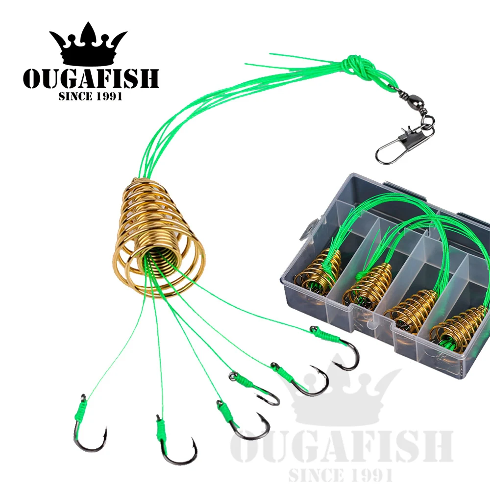 4 piezas de explosión de pesca, resortes de acero inoxidable, extremo anticolgante, jaula alimentadora de trampa afilada A La Carpe, Leurre Accessoire