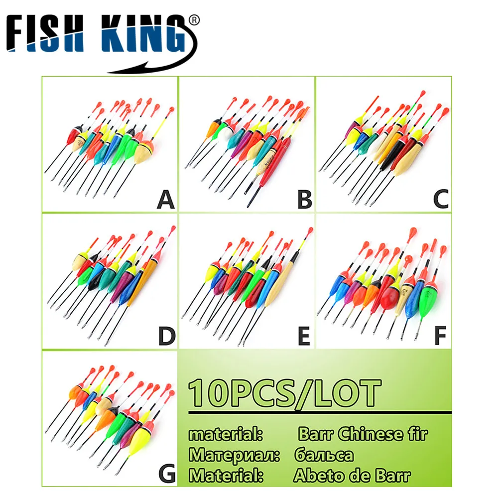 FISHKING-flotador de Pesca de 7 estilos, boya de colores mezclados para carpa, lote de 10 unidades