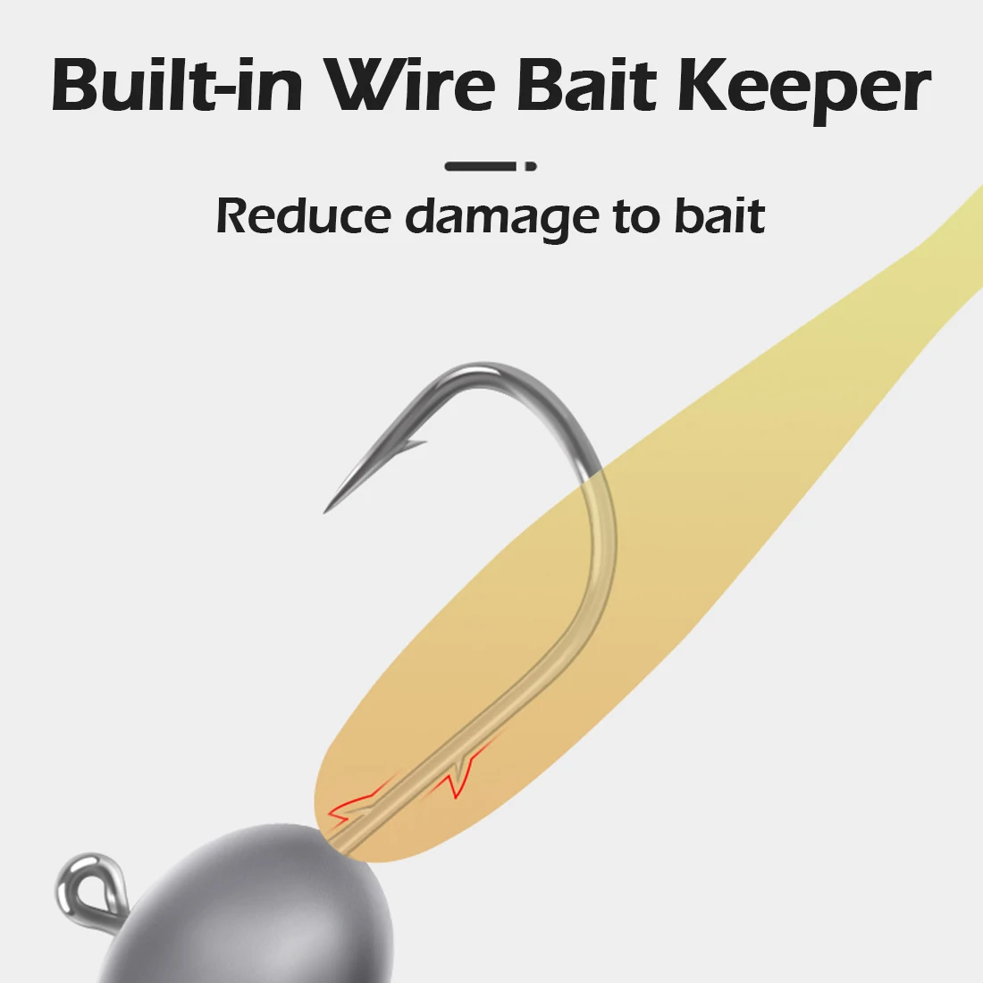 La parte redonda en forma de bola con ojo resistente puede conectar fácilmente la línea. Este anzuelo con cabeza de plantilla garantizará suficiente peso para su pesca con tiro caído.