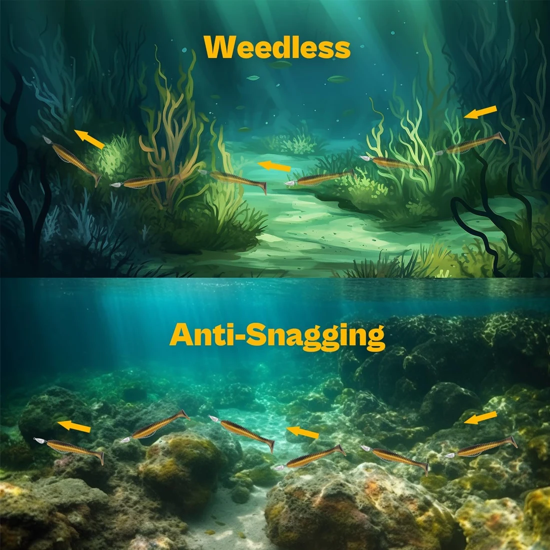 Premium high-carbon steel jig head hook for better penetration. Paired well with many kinds of soft lure baits. Super sharp hook helps you to catch more fish in all water conditions and won't let you miss any big game fish.