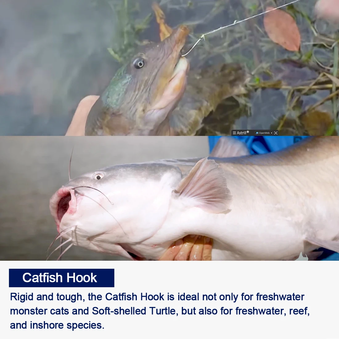 Rígido y resistente, el anzuelo para bagre es ideal no solo para gatos monstruosos de agua dulce y tortugas de cáscara blanda, sino también para agua dulce, arrecife y especies costeras.