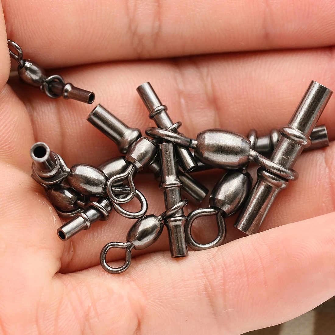 The center swivel is free to spin 360 degrees, allowing your bait or lure to work freely as intended, equating to a better presentation, and thus triggering more hits while preventing line twists and tangles.