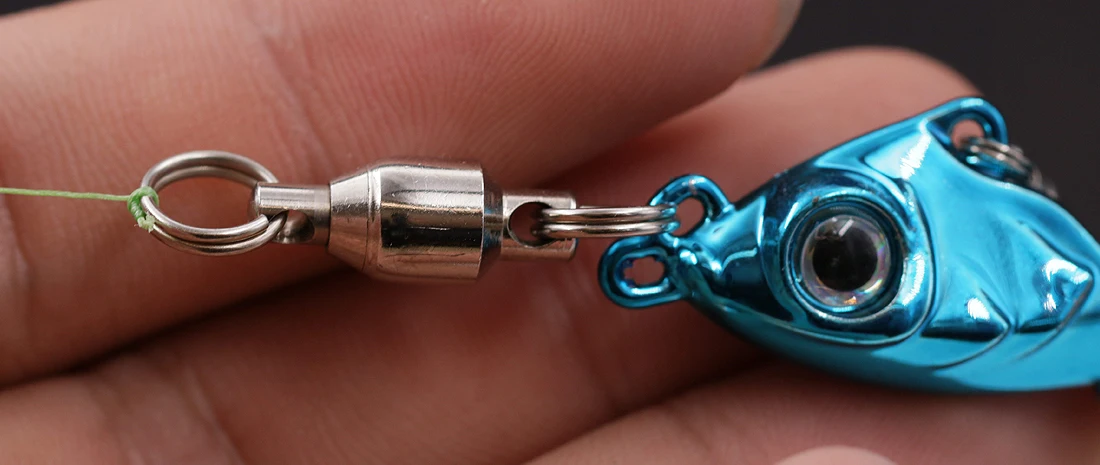 Al atar su hilo de pescar al ojo giratorio, asegúrese de centrar el nudo, ya que esto garantizará la mejor rotación.