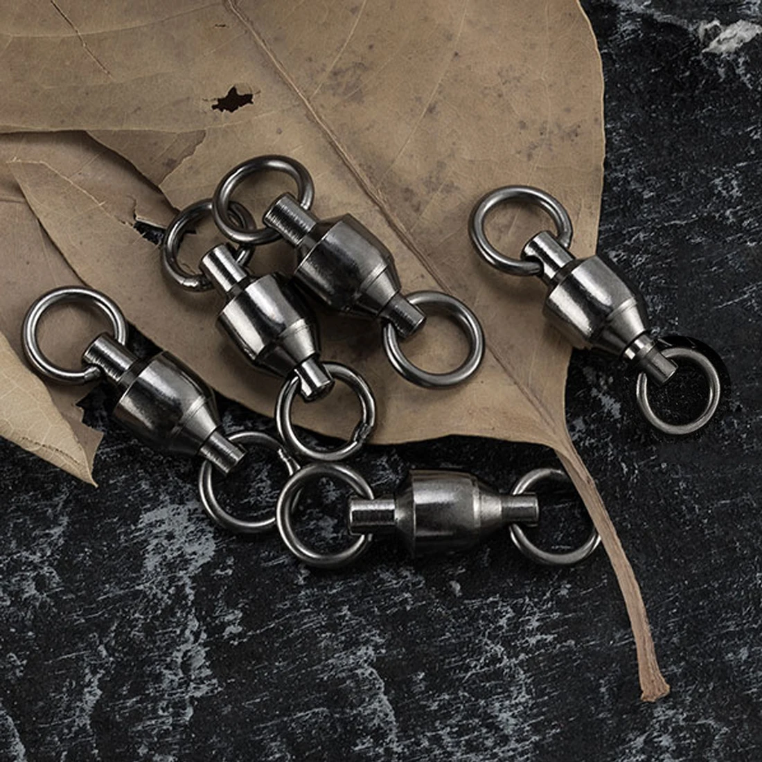 Cuando apuntas a peces de caza grandes, todos tus aparejos deben soportar los rigores del lugar, los rodamientos giratorios de bolas son el eslabón giratorio más efectivo para eliminar el giro de la línea y la fatiga.