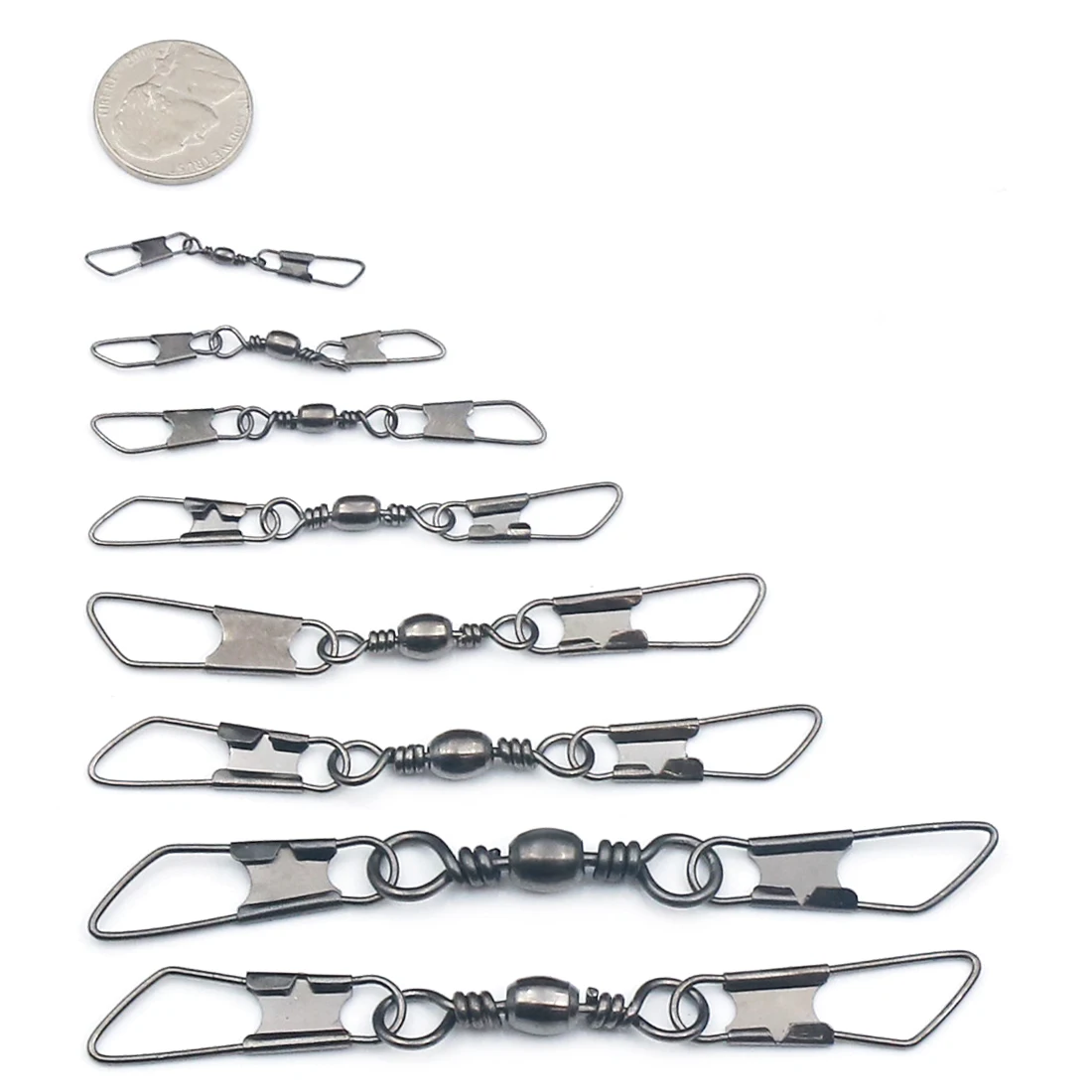 El Barrel Swivel con Snap es compatible con varios componentes de pesca, incluidos líderes, señuelos, anzuelos y giratorios.Los pescadores pueden usarlo para crear configuraciones personalizadas adaptadas a sus técnicas de pesca y especies objetivo específicas.