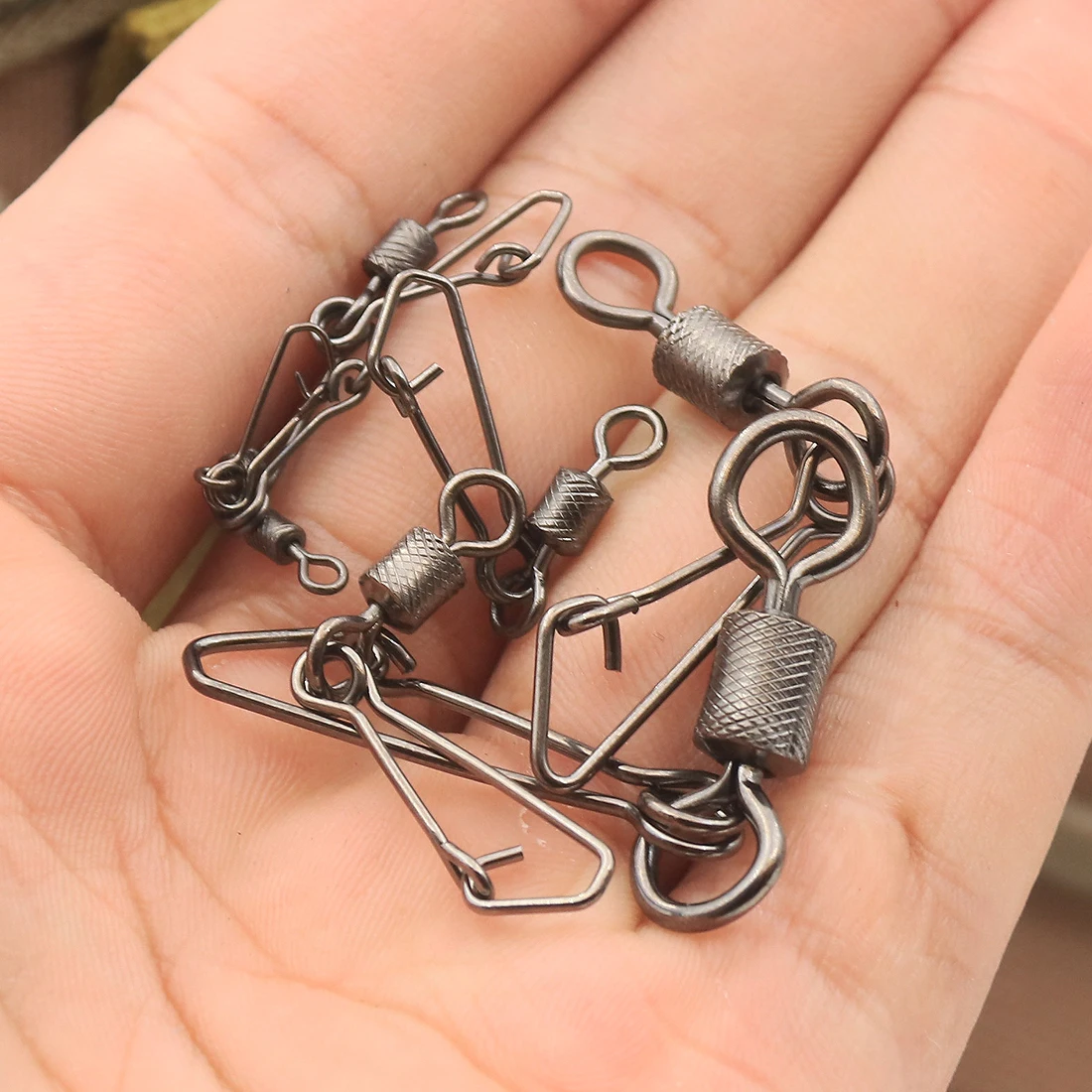 This rolling swivel with hooked snap has a pulling force more than 1 times stronger than the ordinary pin, making it more suitable for fishing fierce fish.This high-quality brass swivel is made of brass and stainless steel. It is designed to be interchangeable with American-style swivels. The pulling force of this product is more than 1 times stronger than the ordinary pin, which is more suitable for fishing fierce fish.