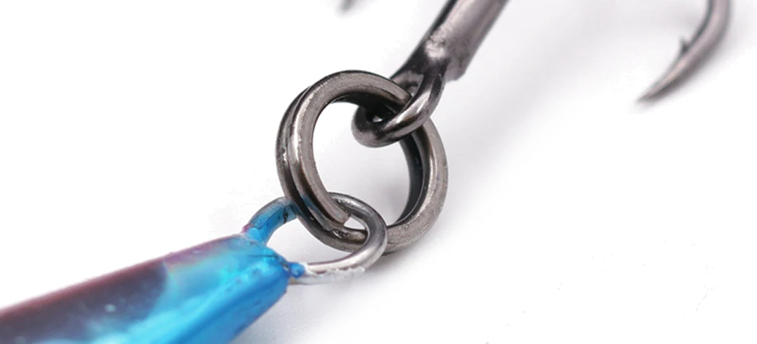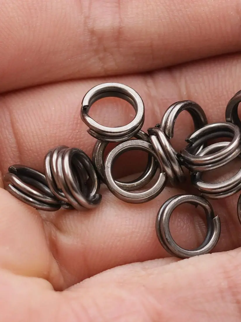 Los anillos divididos de acero inoxidable de alta resistencia son ideales para conectar ganchos a grandes señuelos de agua salada. Hechos de acero inoxidable de la más alta calidad, son resistentes a la corrosión y saltan rápidamente después de abrirlos.