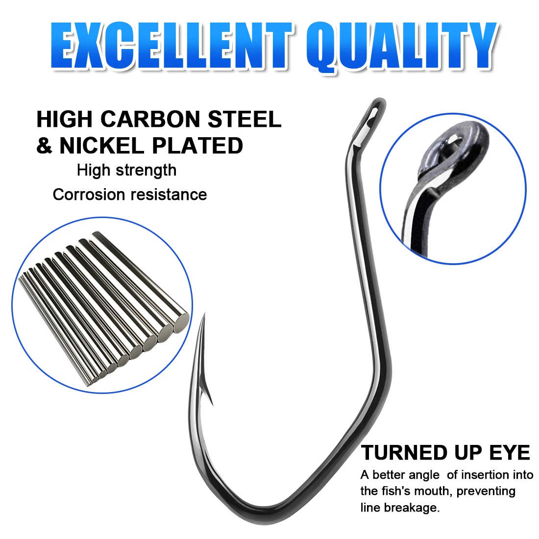 FishTrip-hook para bagre, anzuelos para cebo de río grande, 25-100 Uds., anzuelo offset para pesca, agua salada, agua dulce, acero rico en carbono