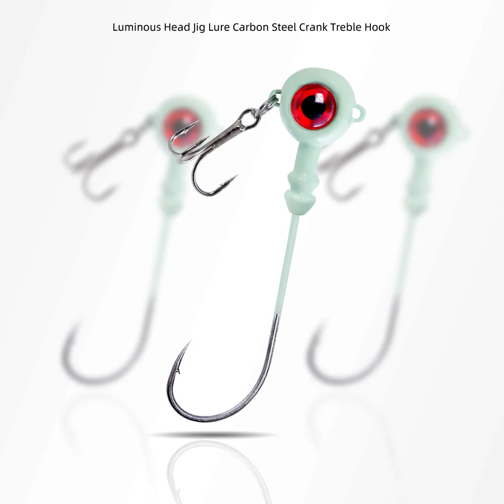 FishTrip, 5 uds., anzuelo con cabeza de anzuelo de pesca, vástago largo con anzuelo triple, plantillas luminosas brillantes para lubina, trucha, tipo de pez pan, aparejos de pesca