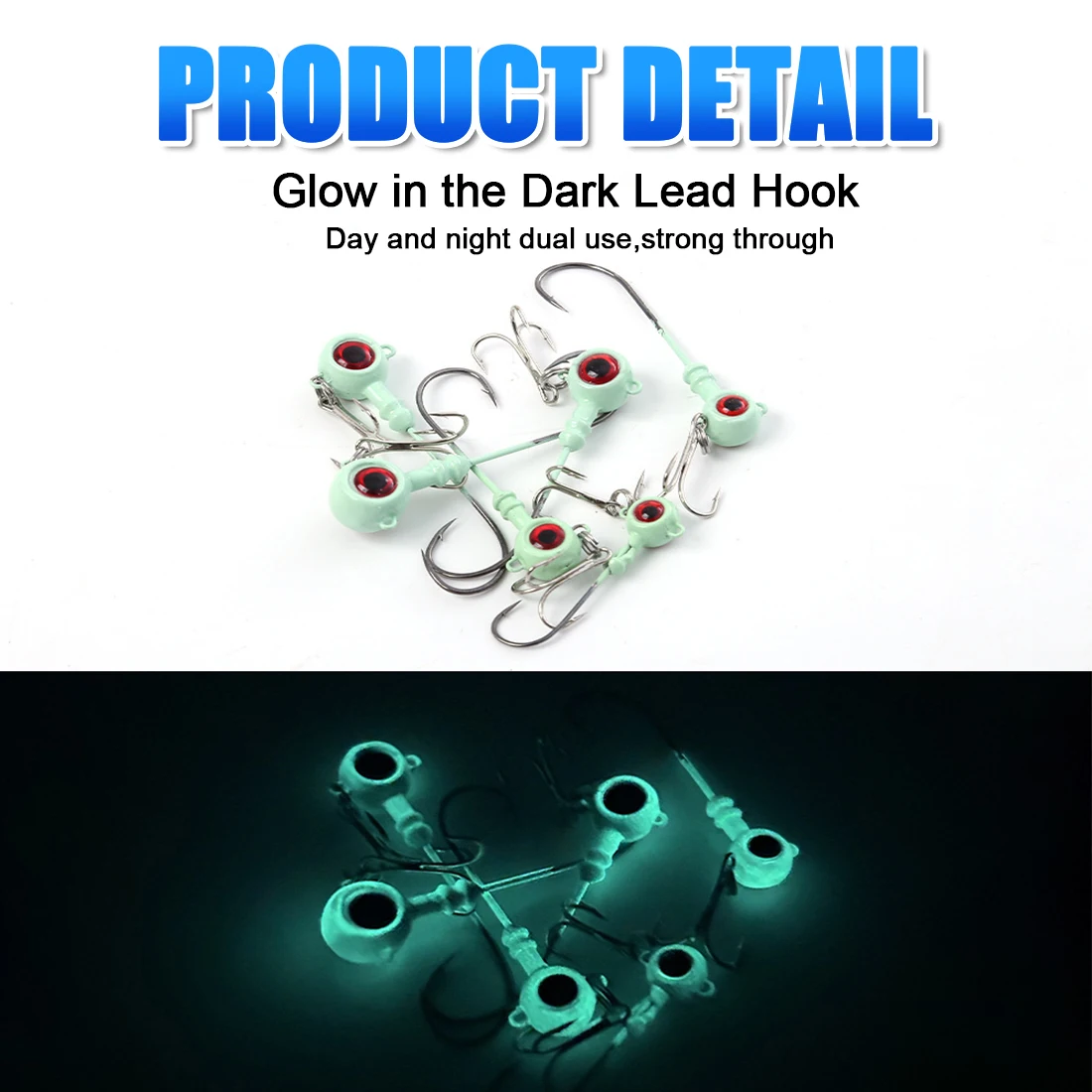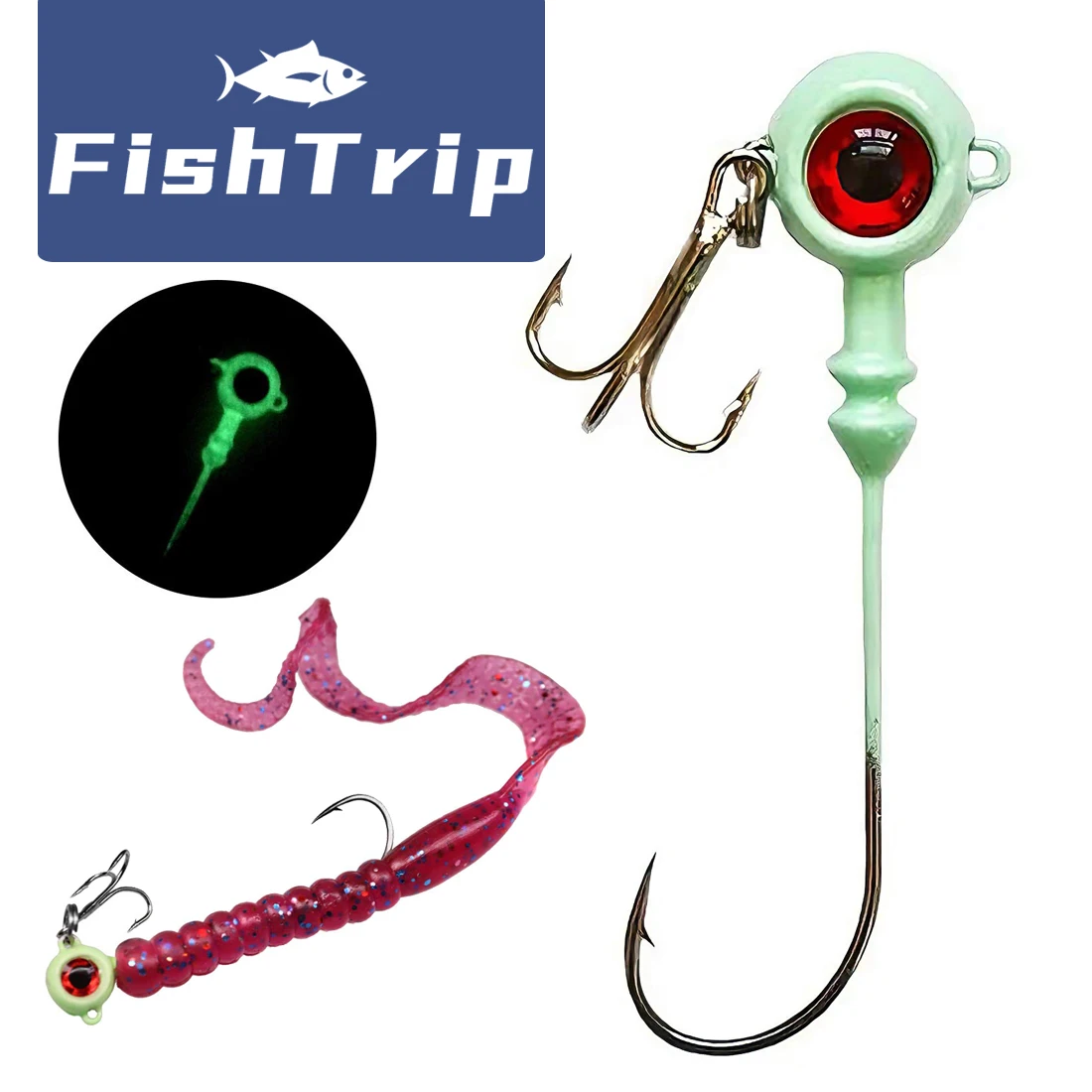 FishTrip, 5 uds., anzuelo con cabeza de anzuelo de pesca, vástago largo con anzuelo triple, plantillas luminosas brillantes para lubina, trucha, tipo de pez pan, aparejos de pesca