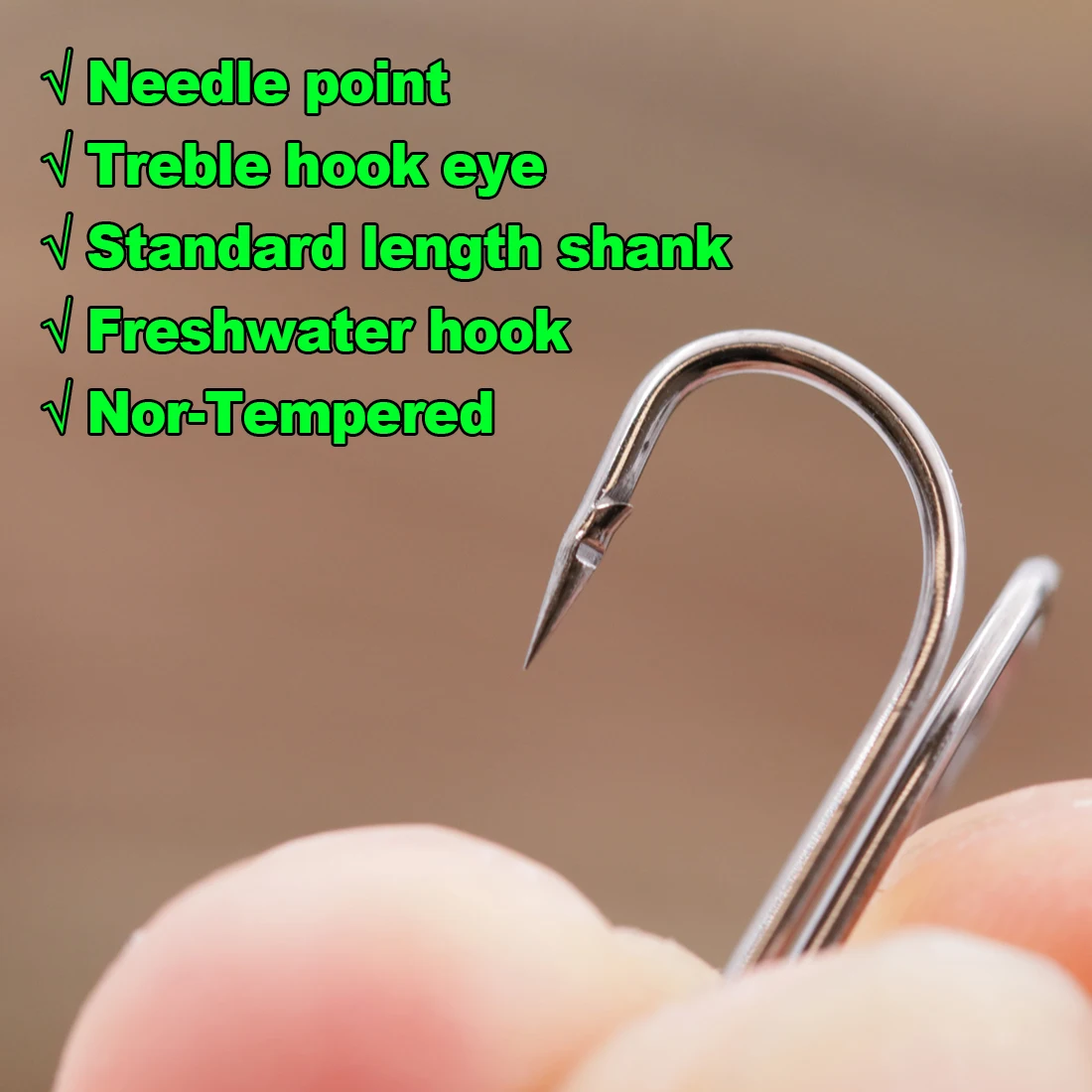 También ideal para señuelos de cebo de hoja o aparejo con ranas de superficie. El gancho presenta una fuerza inigualable y una buena relación calidad-precio.