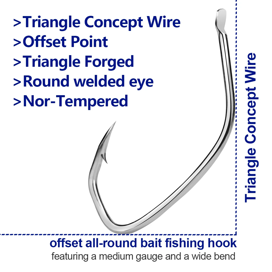 Offset all-round bait fishing hook/featuring a medium gauge and a wide bend